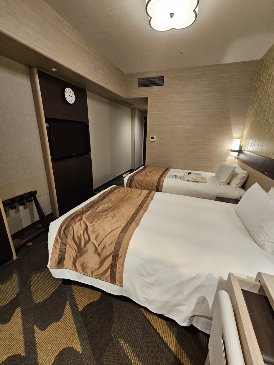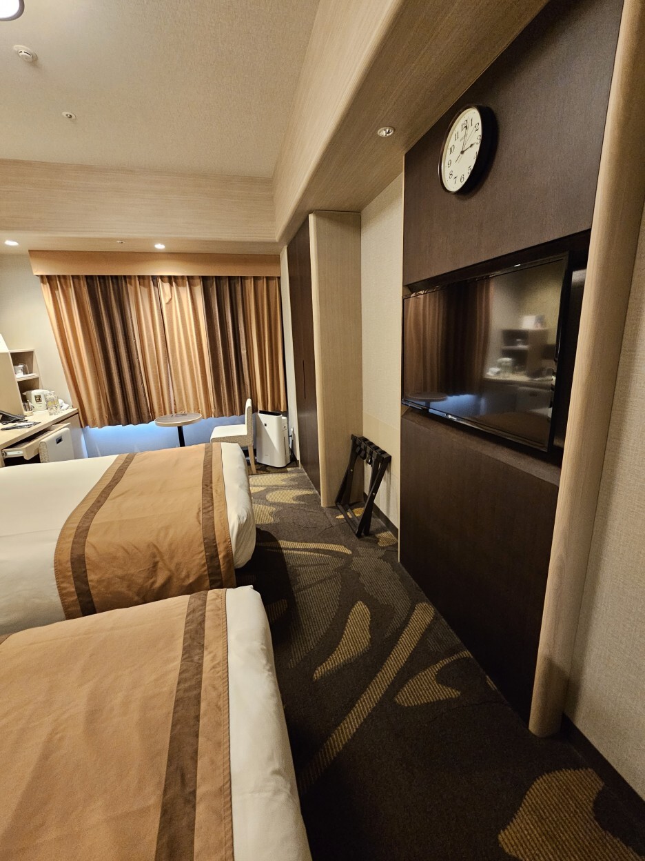 호텔 몬테레이 히메지의 가장 작고 저렴한 방은 트윈룸이다. 일반적인 싱글룸은 없다. 침대 두개가 필요하진 않았지만, 가격이 비싸지 않아 트윈룸을 선택했다. 방 크기는 22㎡로 꽤 넓다.