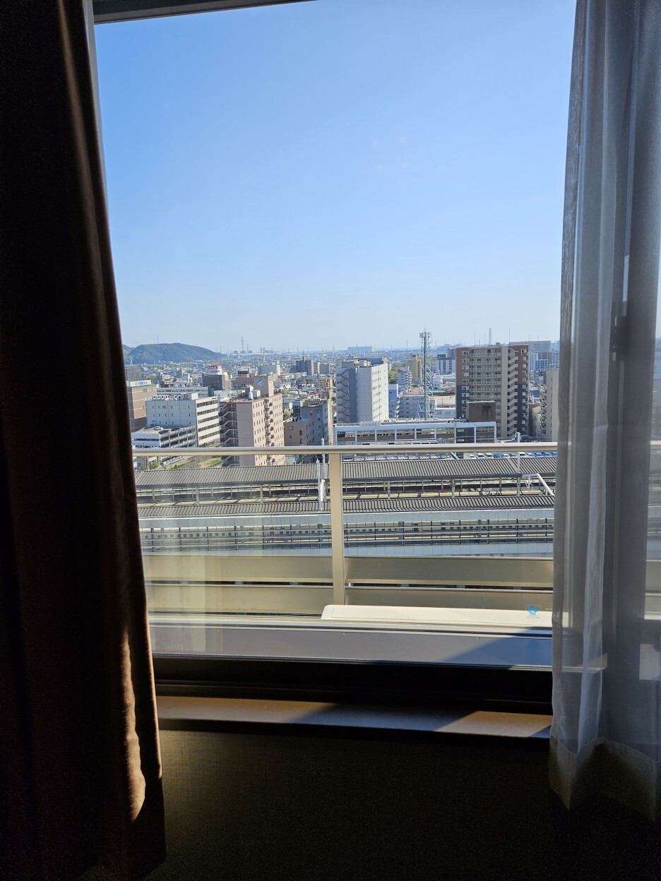 창밖 뷰는 히메지역 플랫폼이 보인다. 하지만 전혀 열차 소음은 없었다.