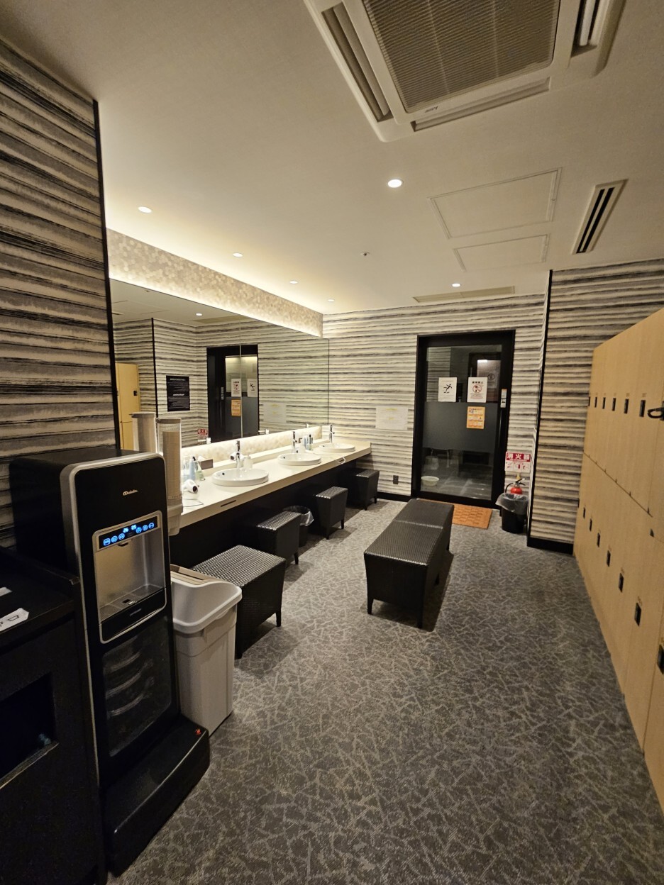 깔끔한 대욕장 탈의실 모습. 로커와 정수기가 보인다.