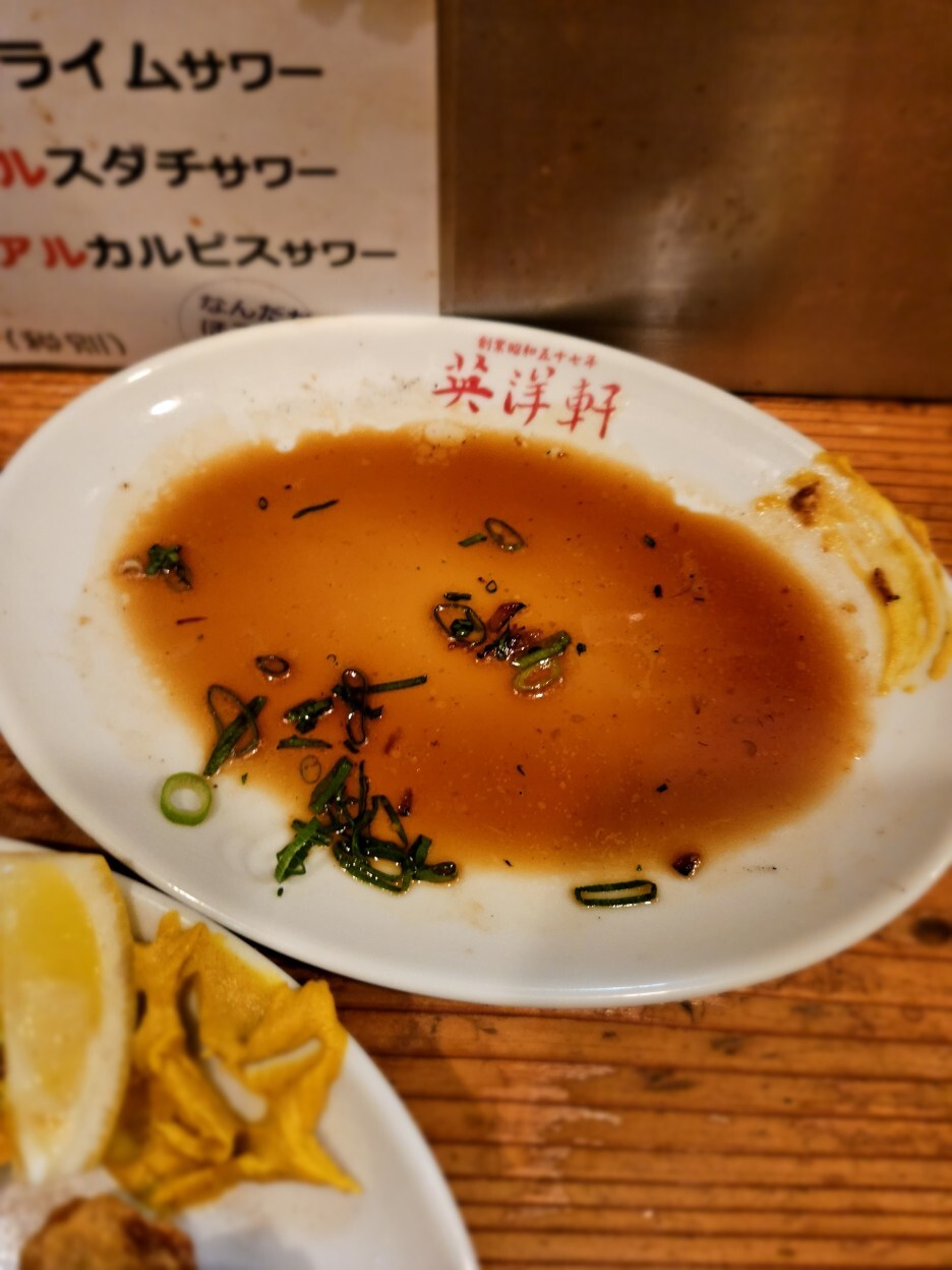 아까 시켰던 야키부타의 소스에도 찍어 먹어 보았다. 오~~ 이게 상당히 훌륭했다. 뭔가 교촌치킨 같은 맛이 되었다. 간장 베이스에 달달함이 가미되고 살짝 수분기가 더해지니 훨씬 먹기 좋아졌다. 처음부터 야키부타 소스에 찍어 먹었어야 했었다.