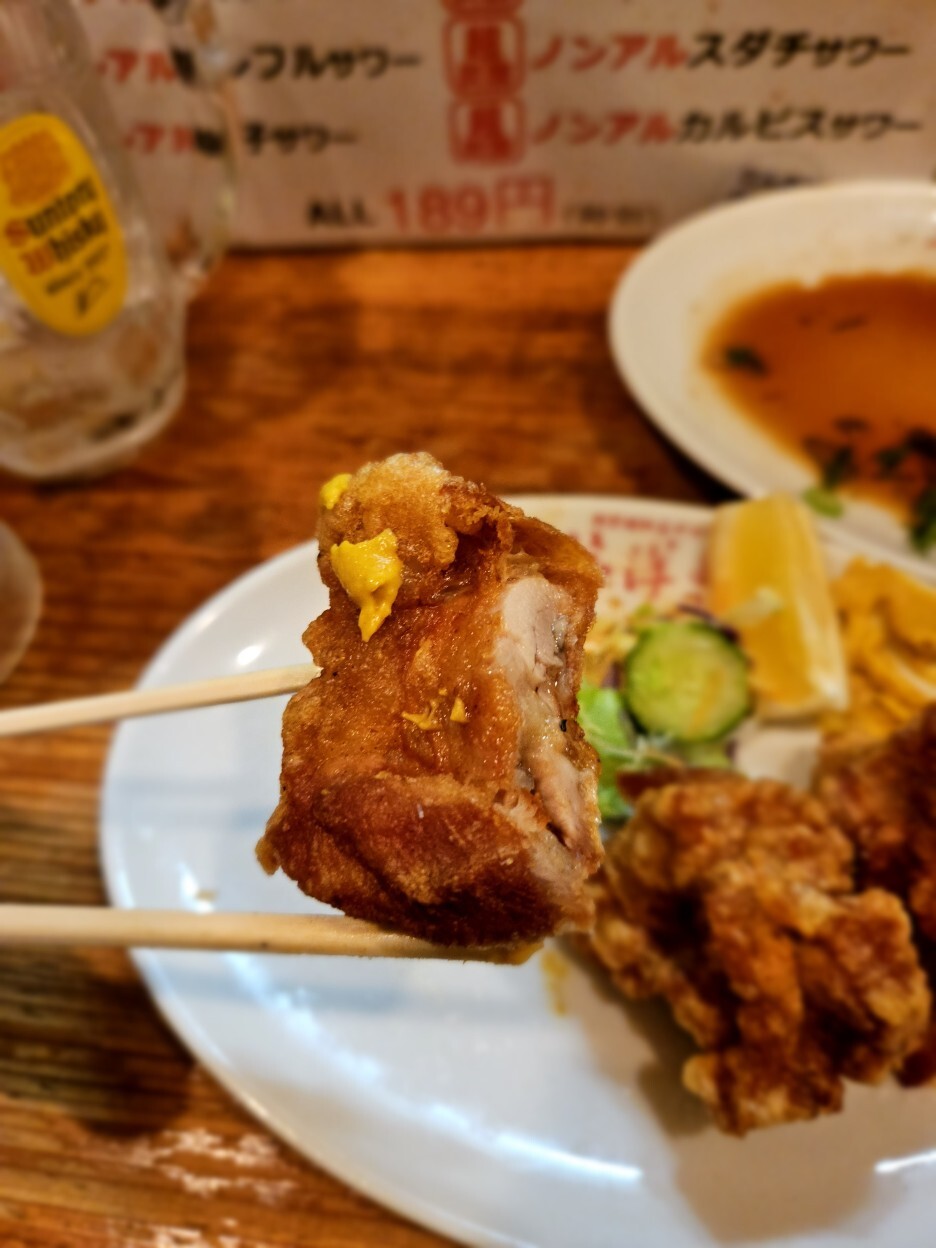 바삭한 튀김옷 안에 육즙이 넘치는 닭고기. 맛있다. 전형적인 일본식 가라아게이다. 아주 훌륭하다.