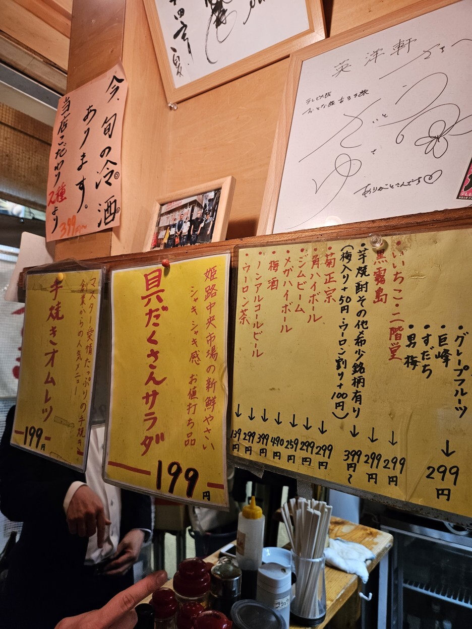 히메지는 뭔가 지역 명물로 유명한 것이 없었다. 그래서 딱히 찾아서 먹어야 하는 음식들은 없었고, 그동안 가보고 싶었던 분위기의 가게나 현지 일본인들이 추천하는 집들을 위주로 찾아보았고, 그중 꽤 맛있어 보이는 음식들을 발견하여 방문해 보기로 했다. 바로 서서 먹는 이자카야 에이요켄.