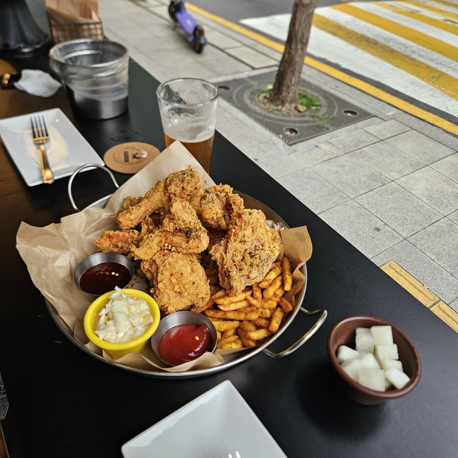 여기 호피덕에 오면 항상 시키는 것이 치킨이다. 닭은 크지 않지만, 튀김 상태도 아주 좋고 짭짤한 맛이 훌륭하다.