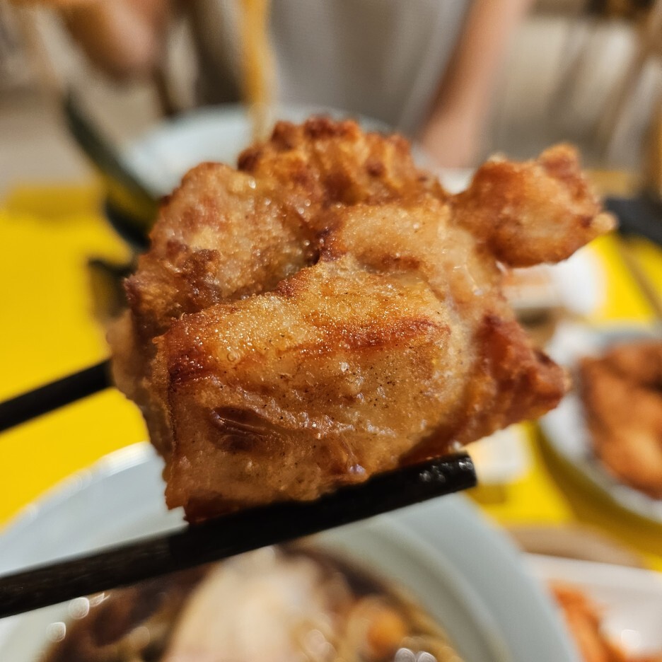 한입 먹어보니, 육즙이 쭈욱 나오는 것이 좋다. 양도 상당해서 라멘과 먹다 보니 배가 많이 불렀다.