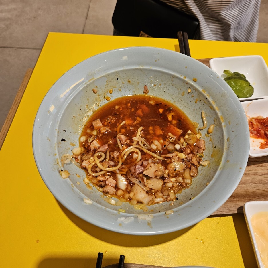 한참 먹다 간마늘을 넣었다. 느끼해지는 타이밍에 마늘은 딱 좋은 변조가 되었다. 깔끔한 맛으로 다시 먹을 수 있게 된다.