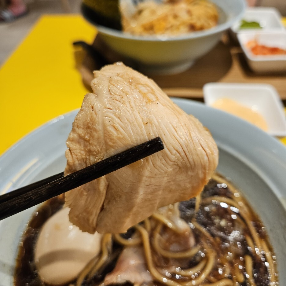 일반적인 라멘보다는 꽤 두꺼운 면의 굵기. 진한 쇼유베이스의 국물에 굵은 면이 잘 어울린다.