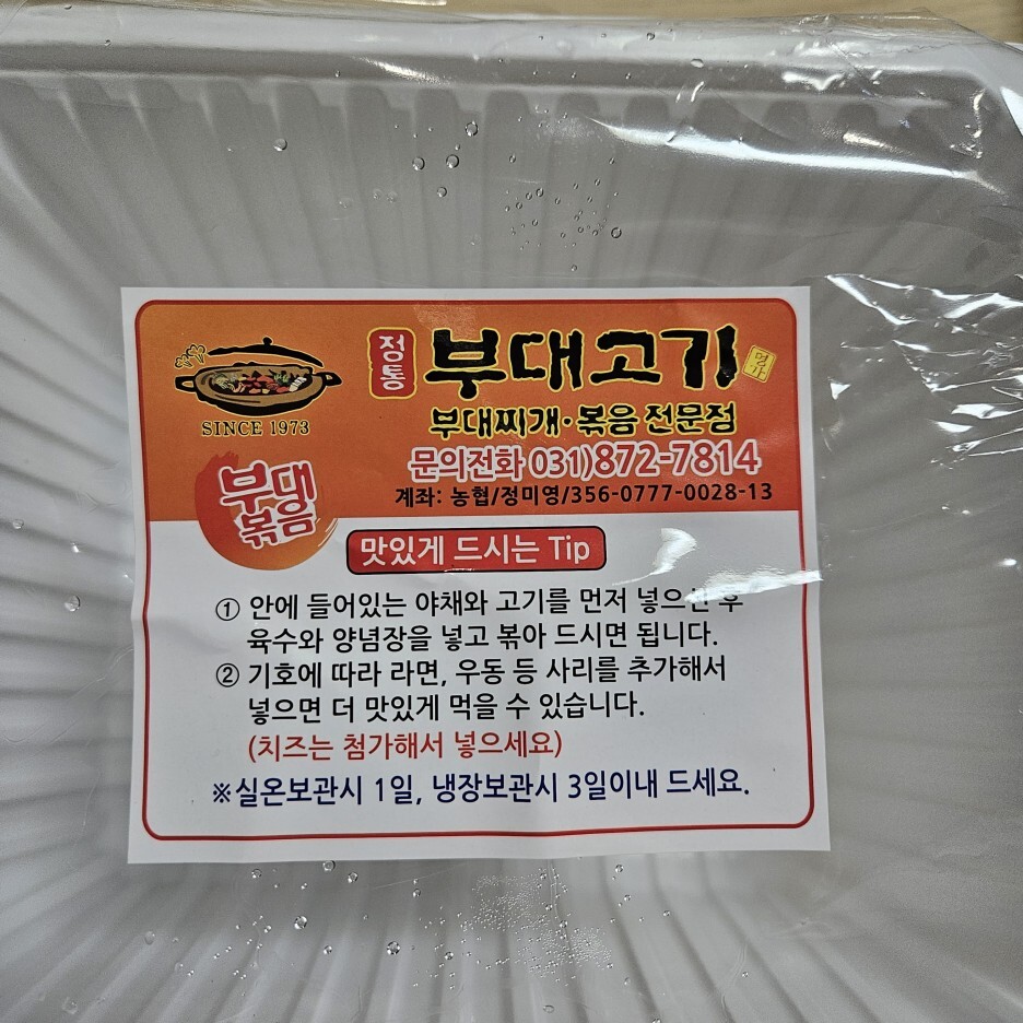 부대고기 2인분과 라면사리 하나를 함께 포장해 주셨다. 24000원. 라면사리는 면을 익힌 뒤, 부대고기와 함께 먹으라고 알려주셨다.