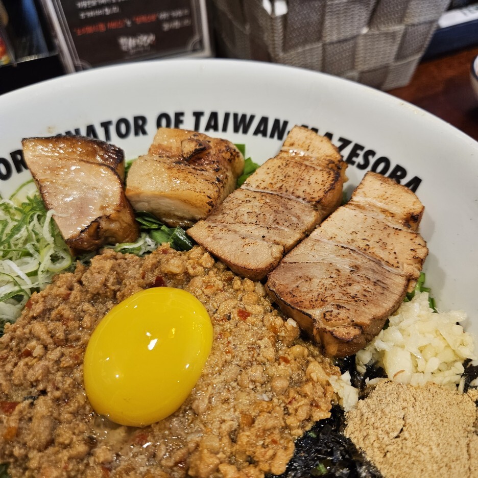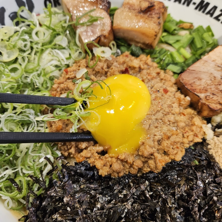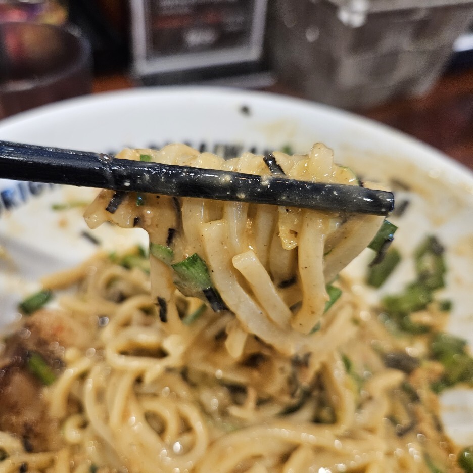일반 마제소바 보다 조금 더 큰 그릇에 담겨 나온 도니꾸 마제소바 면 추가 버전이다. 도니꾸라서는 아니고 면추가라서 큰 그릇에 담긴 듯 하다.