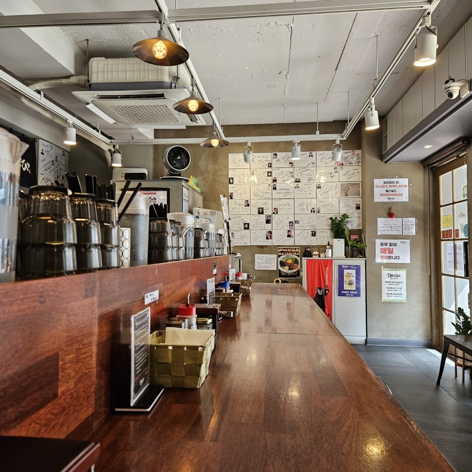 이렇게 기다란 일자형 카운터 테이블로 구성이 되어 있다.