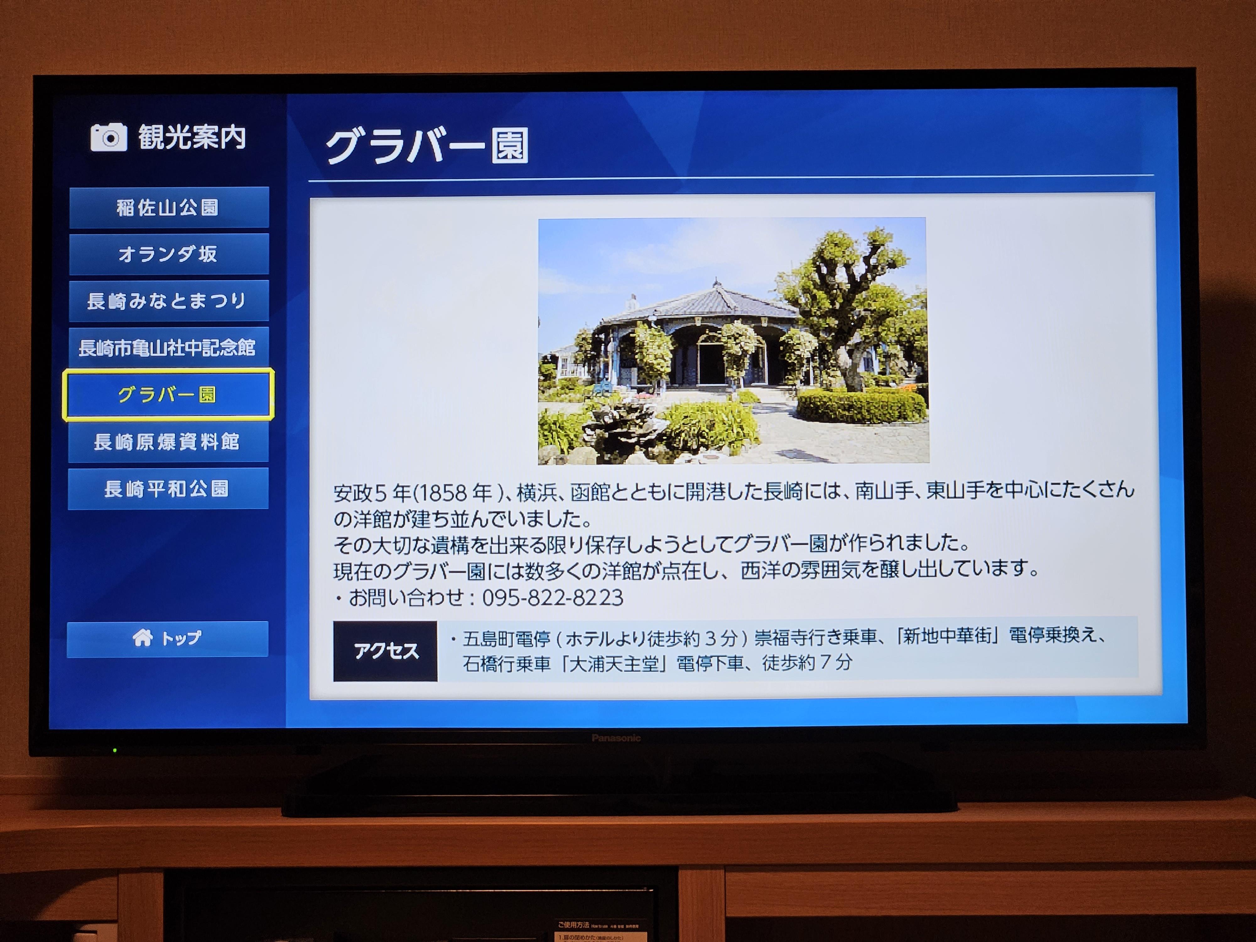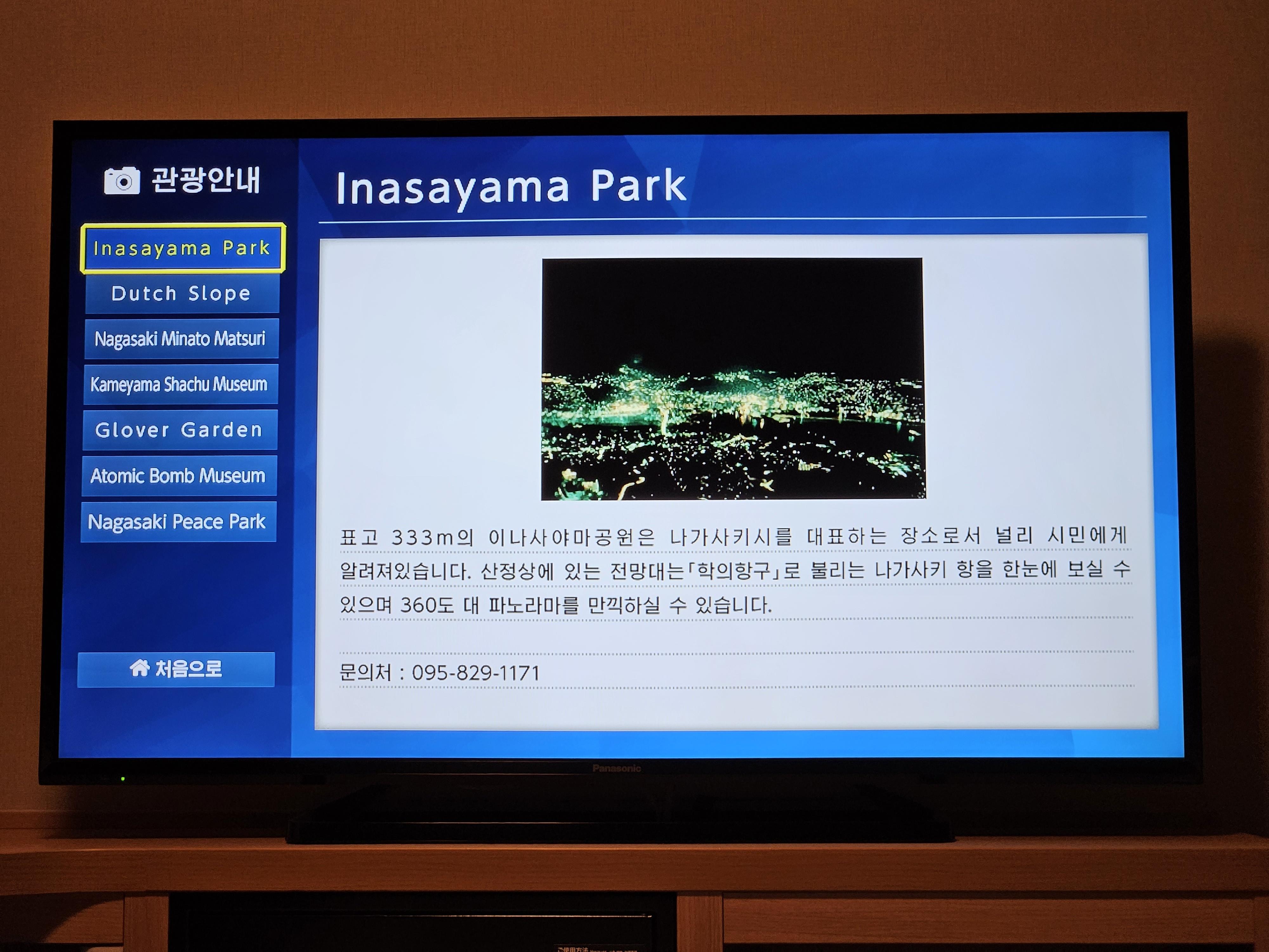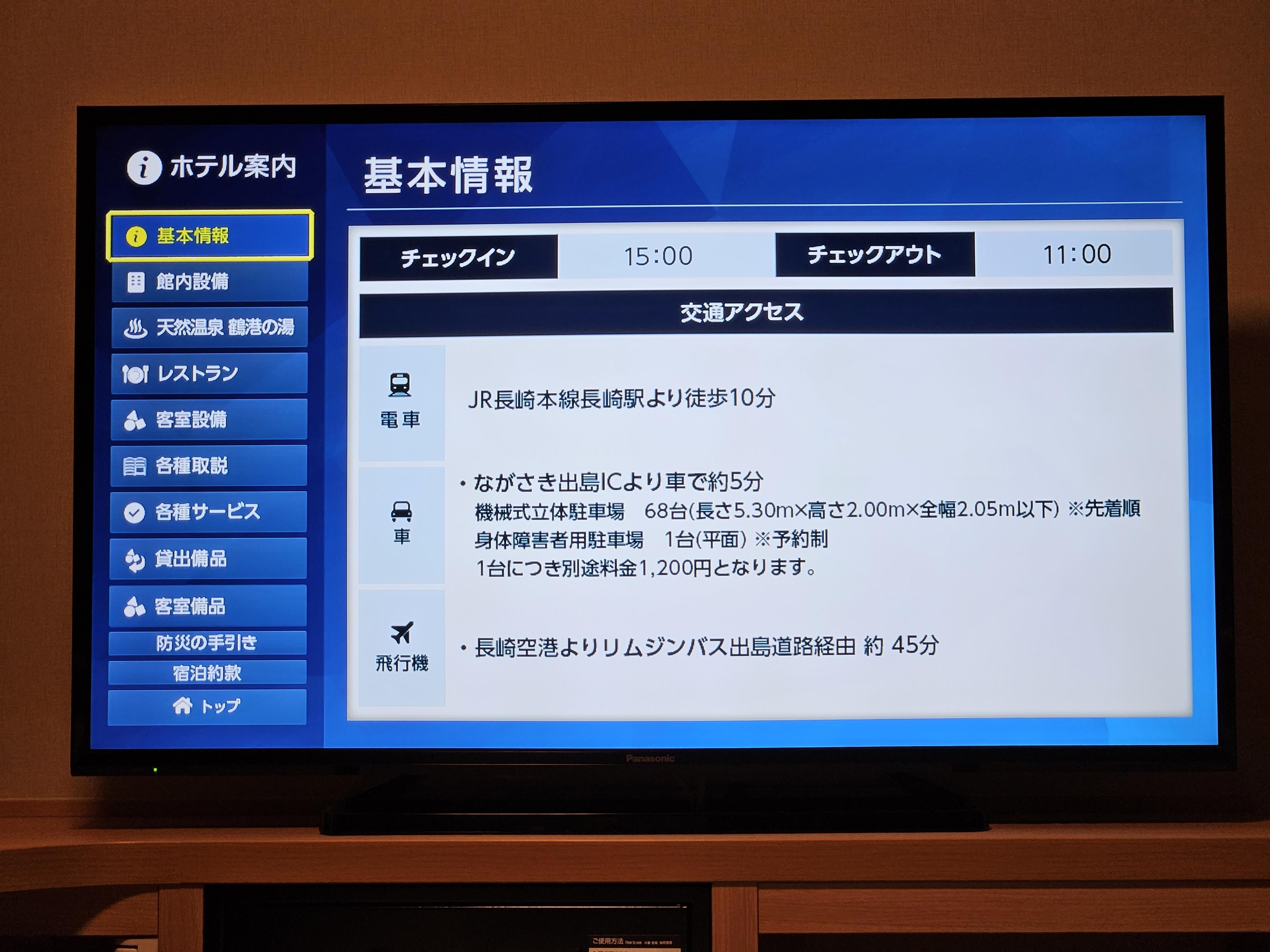 요즘 많은 호텔에서는 TV에서 많은 정보를 제공한다. 도미인 프리미엄 나가사키도 동일하다. 여러 가지 내용을 사진으로 담아 보았다.