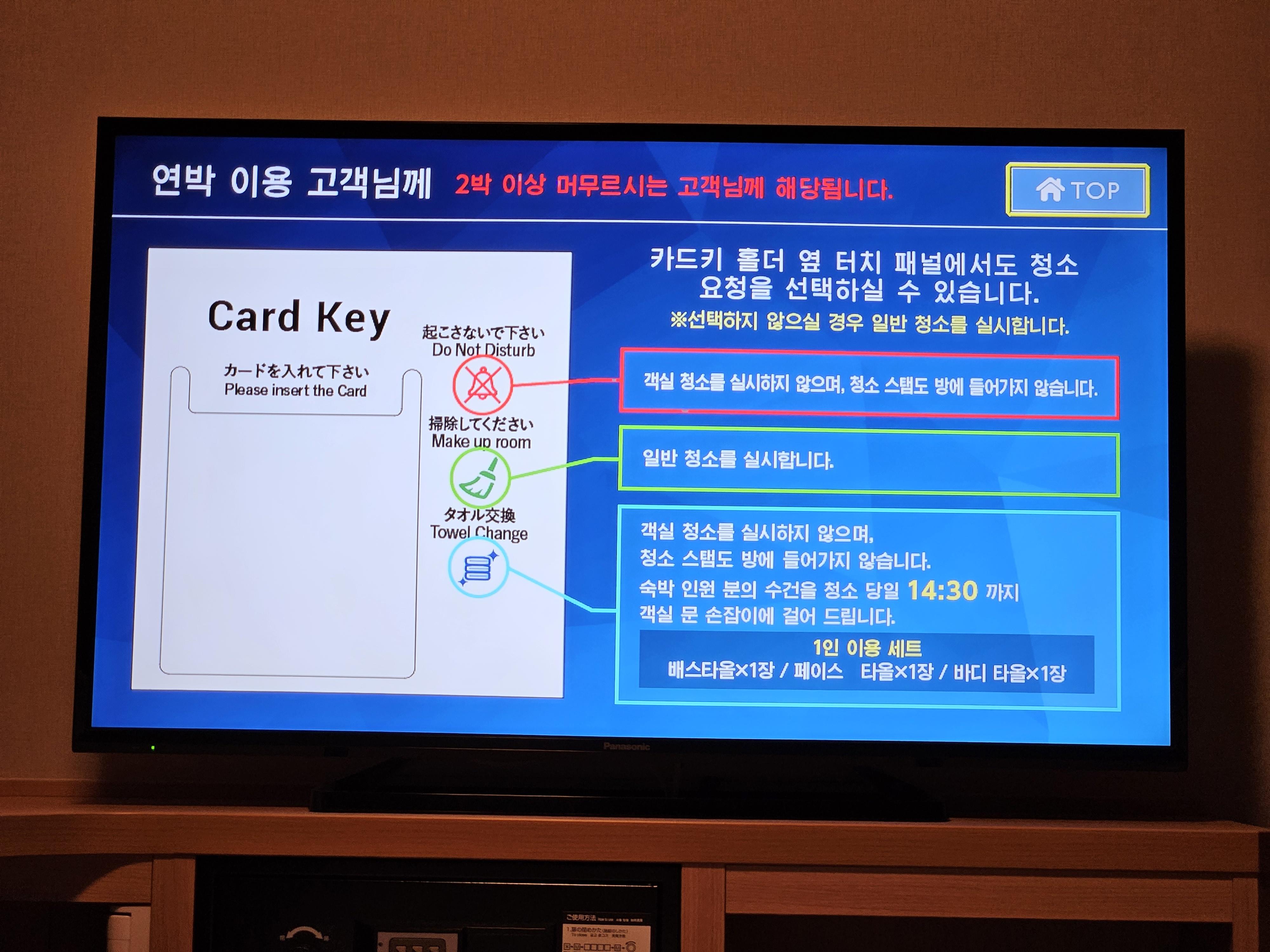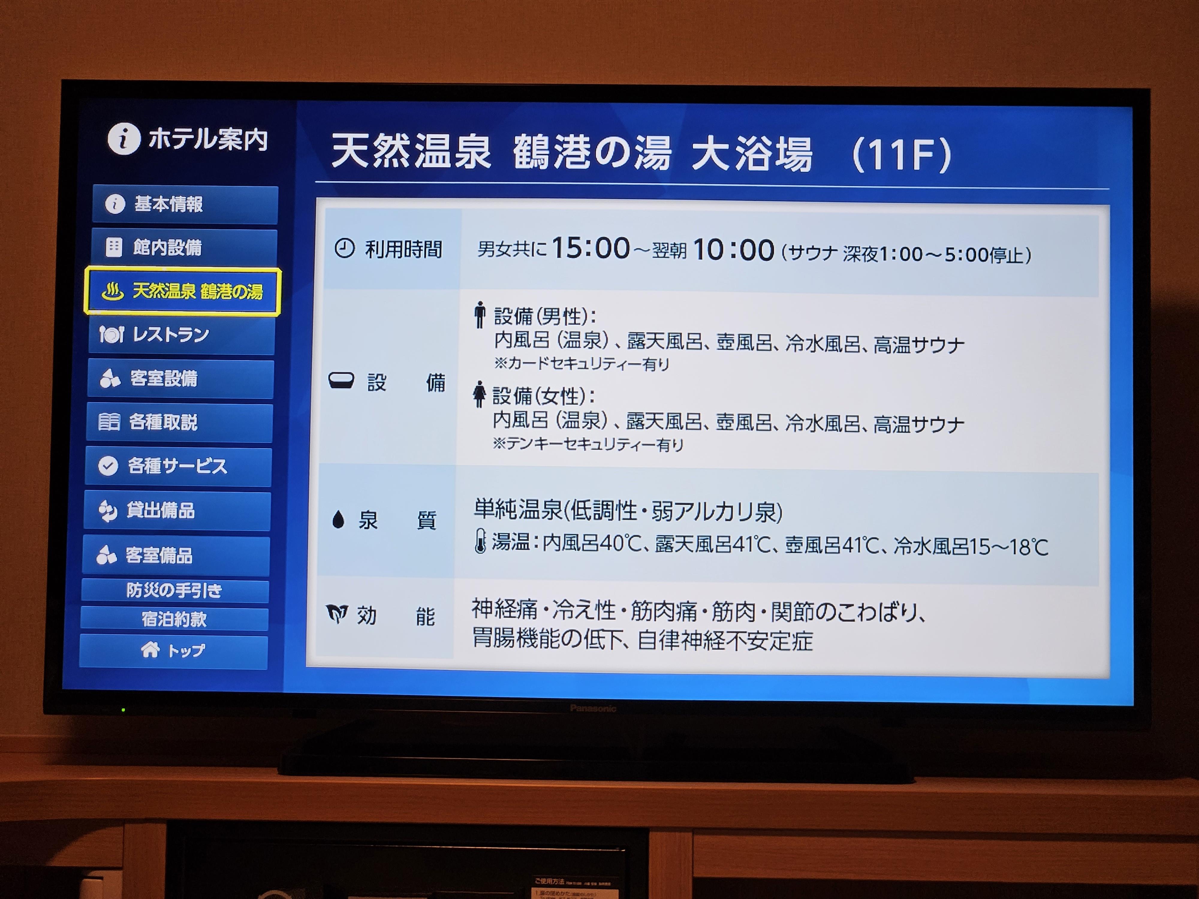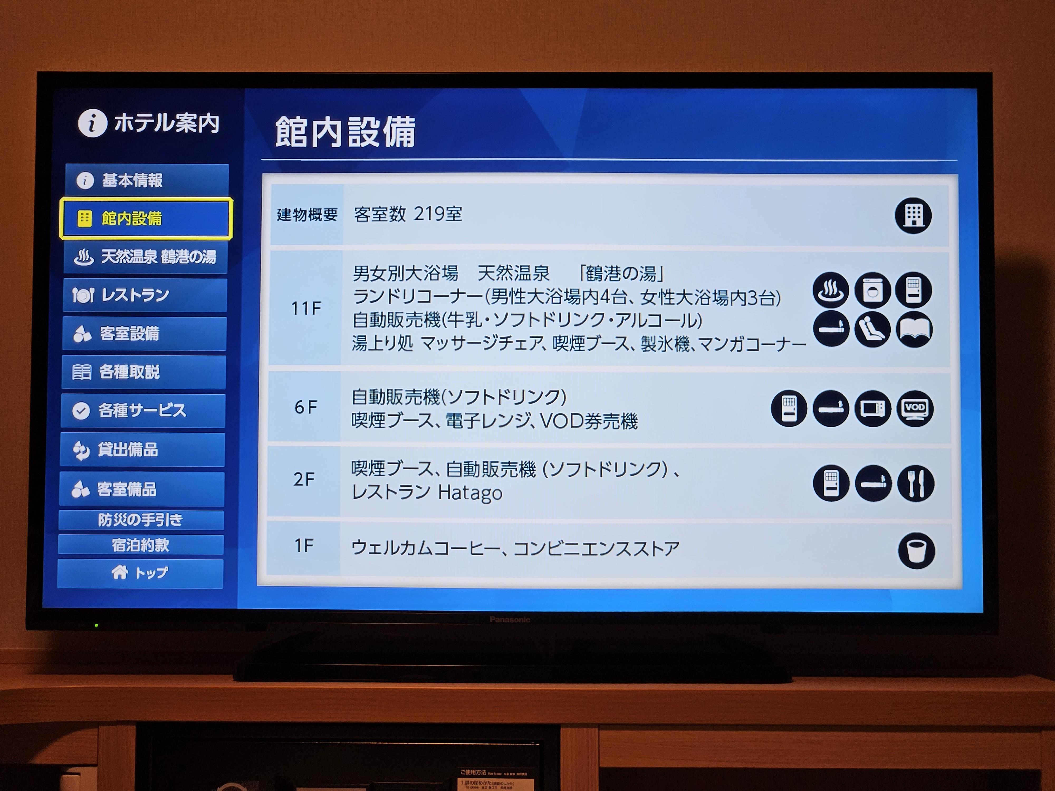 요즘 많은 호텔에서는 TV에서 많은 정보를 제공한다. 도미인 프리미엄 나가사키도 동일하다. 여러 가지 내용을 사진으로 담아 보았다.