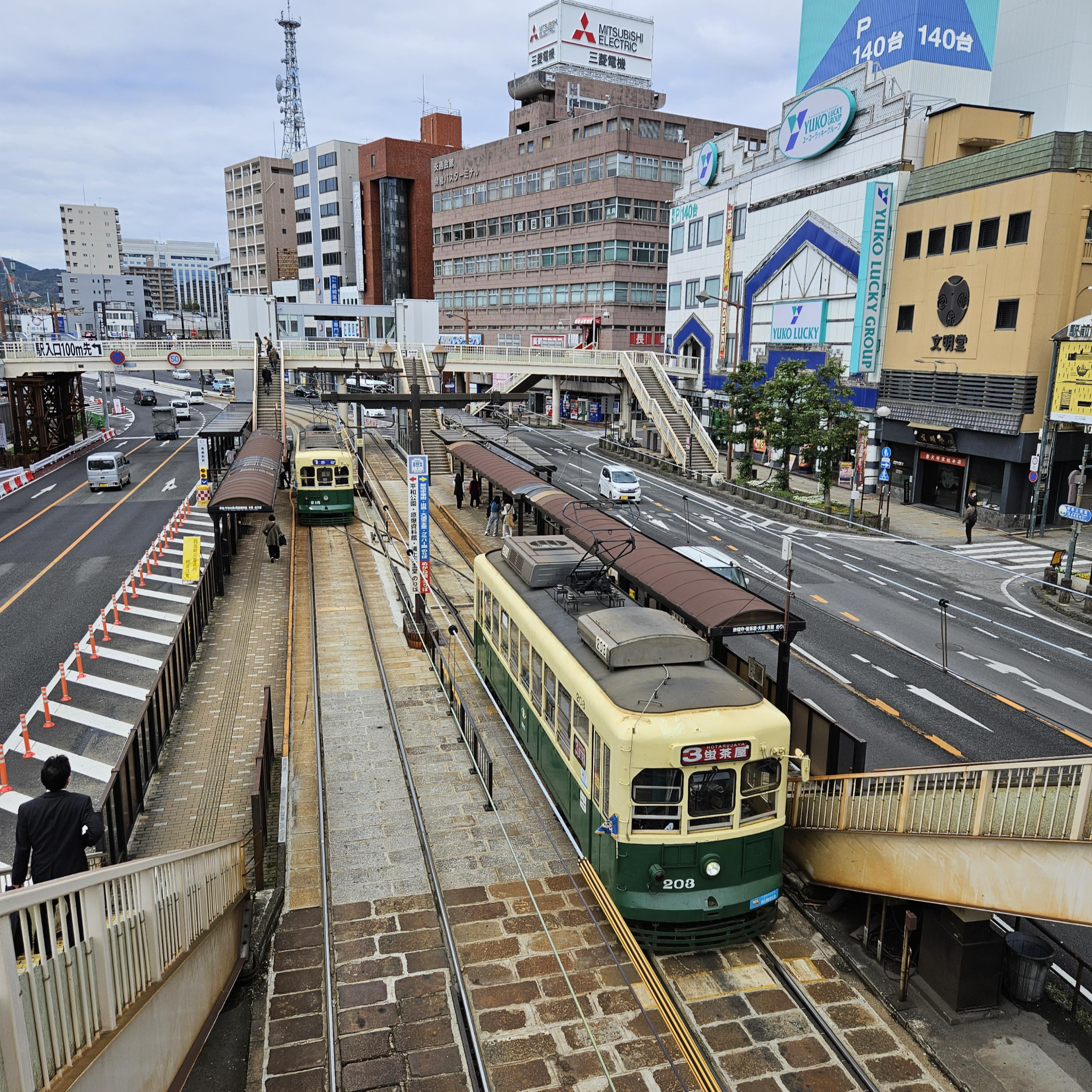 (아래 사진은 나가사키 역 앞의 노면전차 정류소 사진이라 관련 없음. 죄송.)