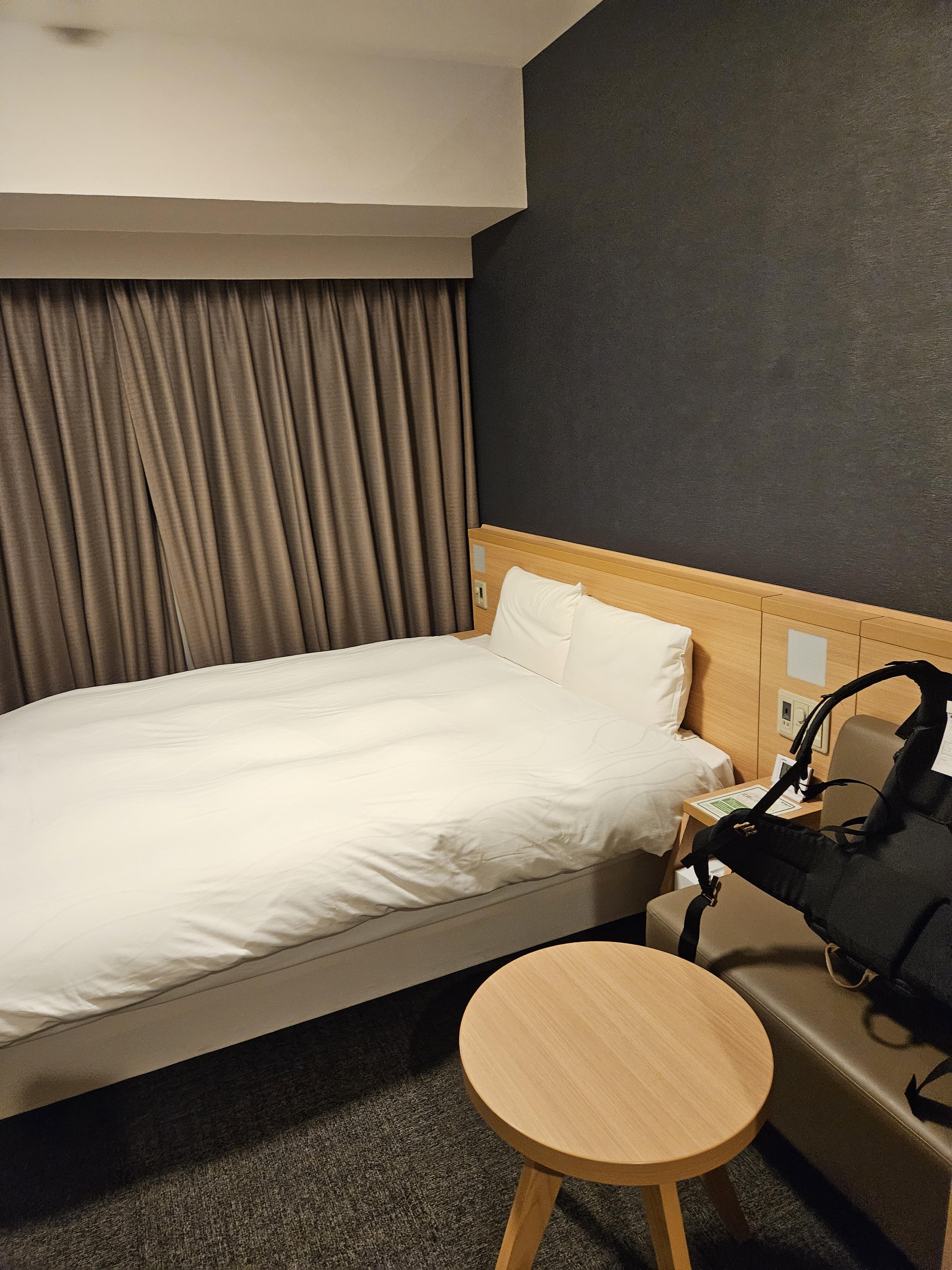 스탠더드퀸 룸은 크기가 17.3~21.8㎥, 침대 사이즈는 160㎝ x 195㎝ 라고 한다. 혼자 사용하기에 많이 넓고 좋았다.