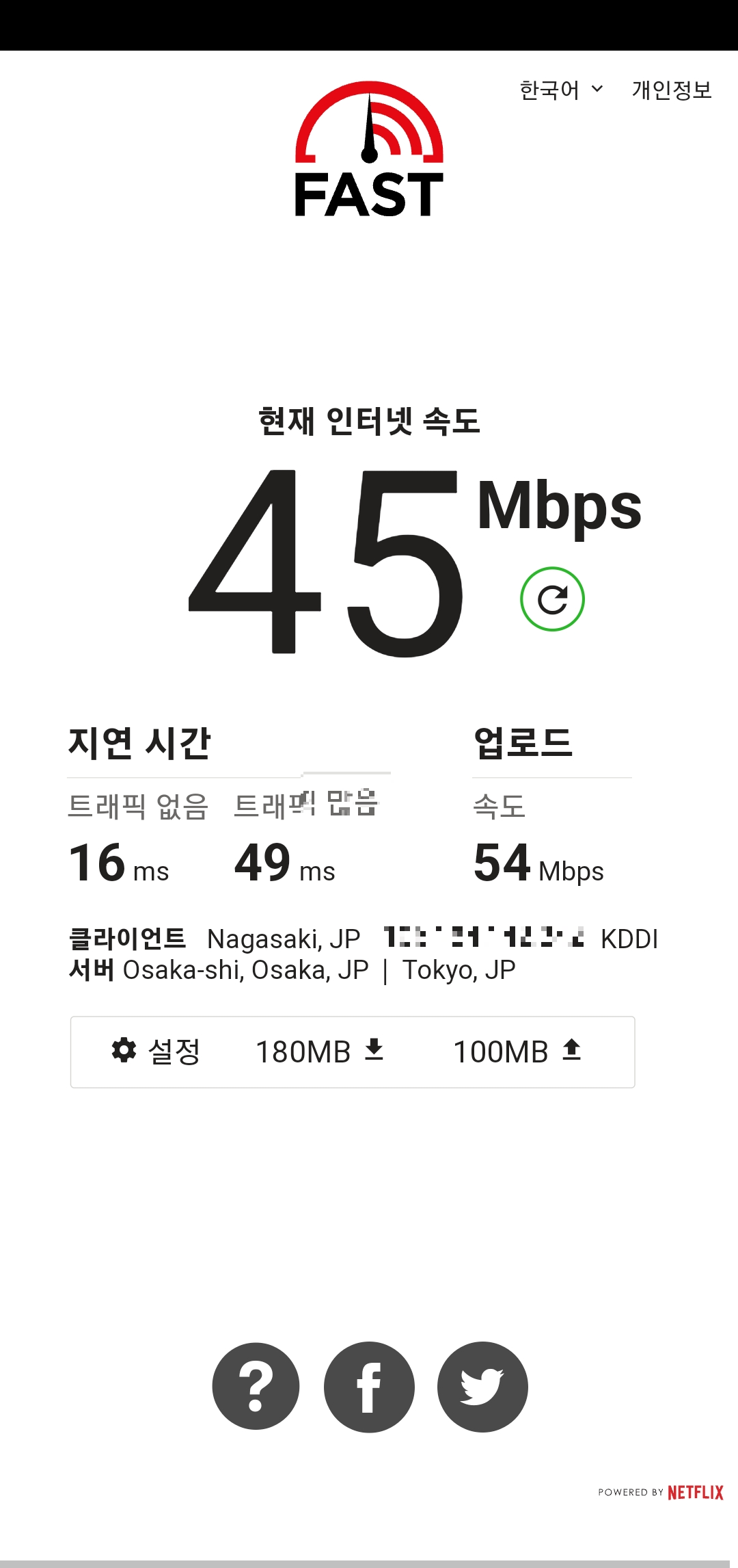 다운로드 45Mbps (5.6MByte/s) 로 사용 시 아주 쾌적했고 전혀 문제가 없었다.