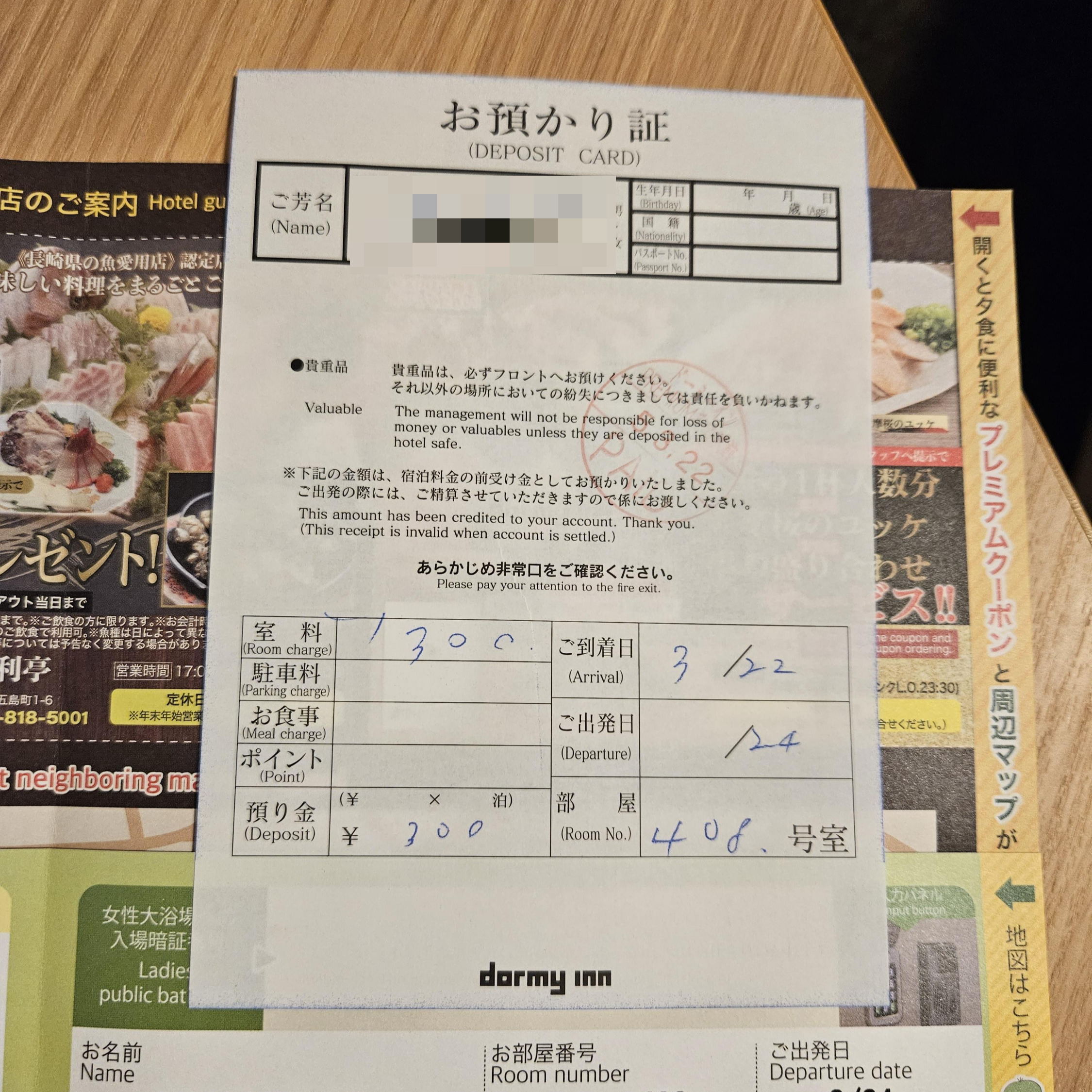 도미인 프리미엄 나가사키도 입욕세가 있었고 1인 1박당 150엔 이었다.