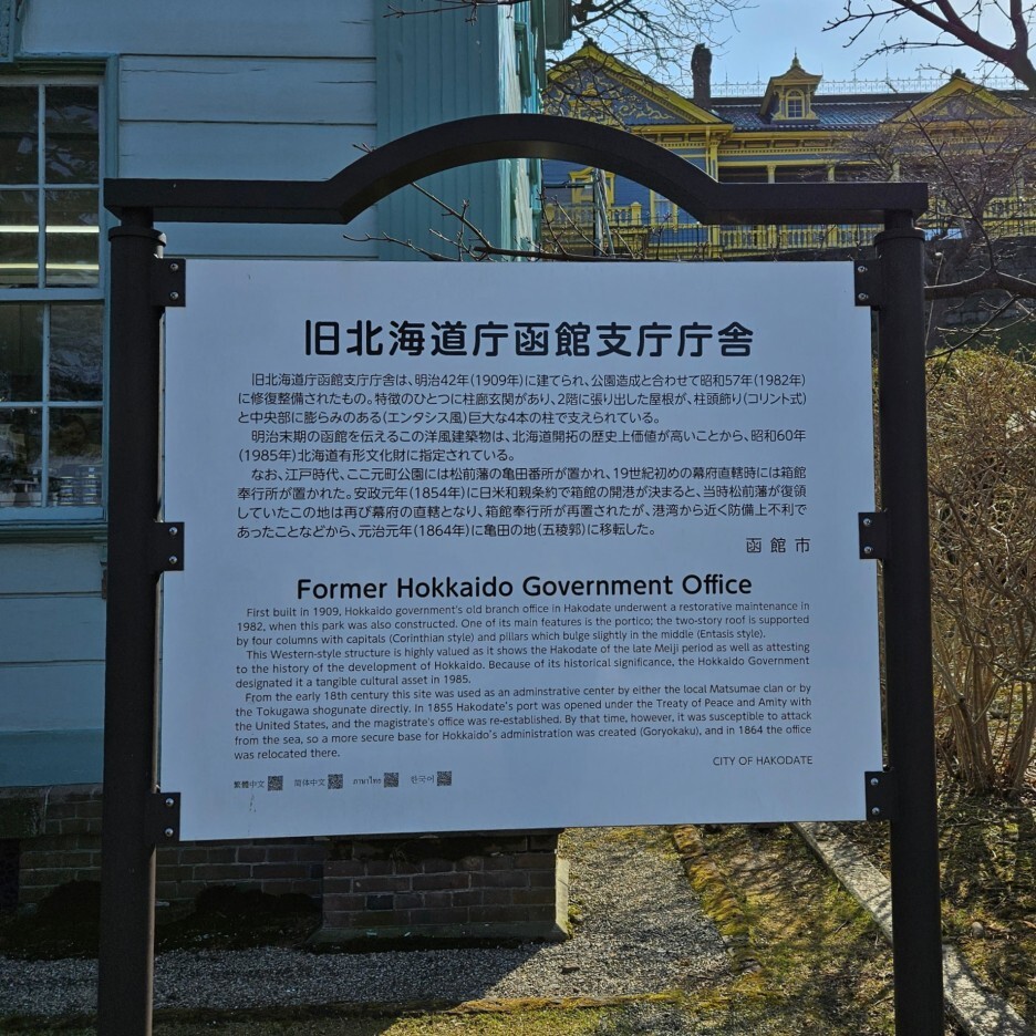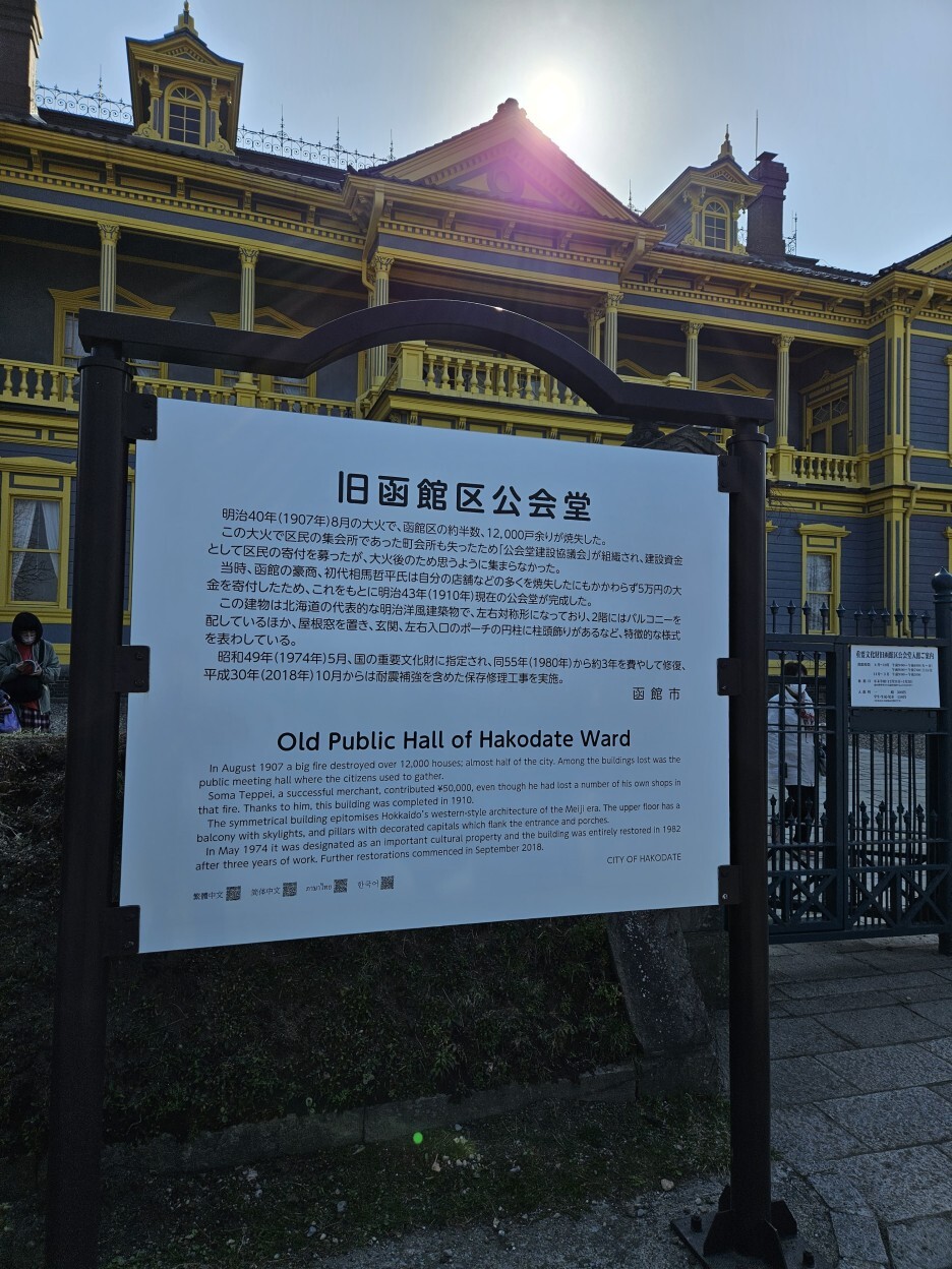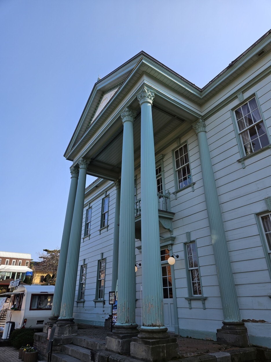 이 건물도 1907년 대화재로 소실되어 1910년에 다시 지어진 건물이라고 한다. 메이지 말기의 하코다테를 보여주는 이 서양식 건축물은 홋카이도 개척의 역사적 가치가 높아 홋카이도 지정 유형문화재로 지정되어 있다고 한다.