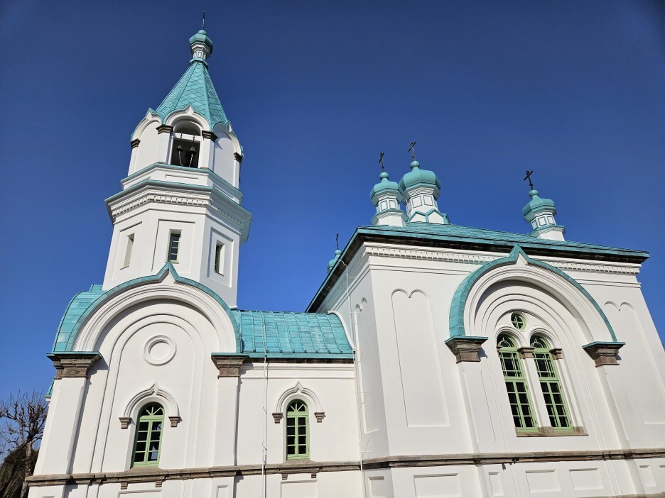 종탑이 있는 19세기 러시아 정교회 건물. 정확하게는 '주님의 부활 성당'은 성당의 정식 명칭이다. 그 이름처럼, 하리스토스(그리스도의 그리스어 표기)의 부활을 기념하는 성당이며, 주님의 부활 성당은 중요문화재(1983년 6월 2일 지정)이다. 종소리는 일본의 소리 풍경 100선에 선정되었다고 한다.