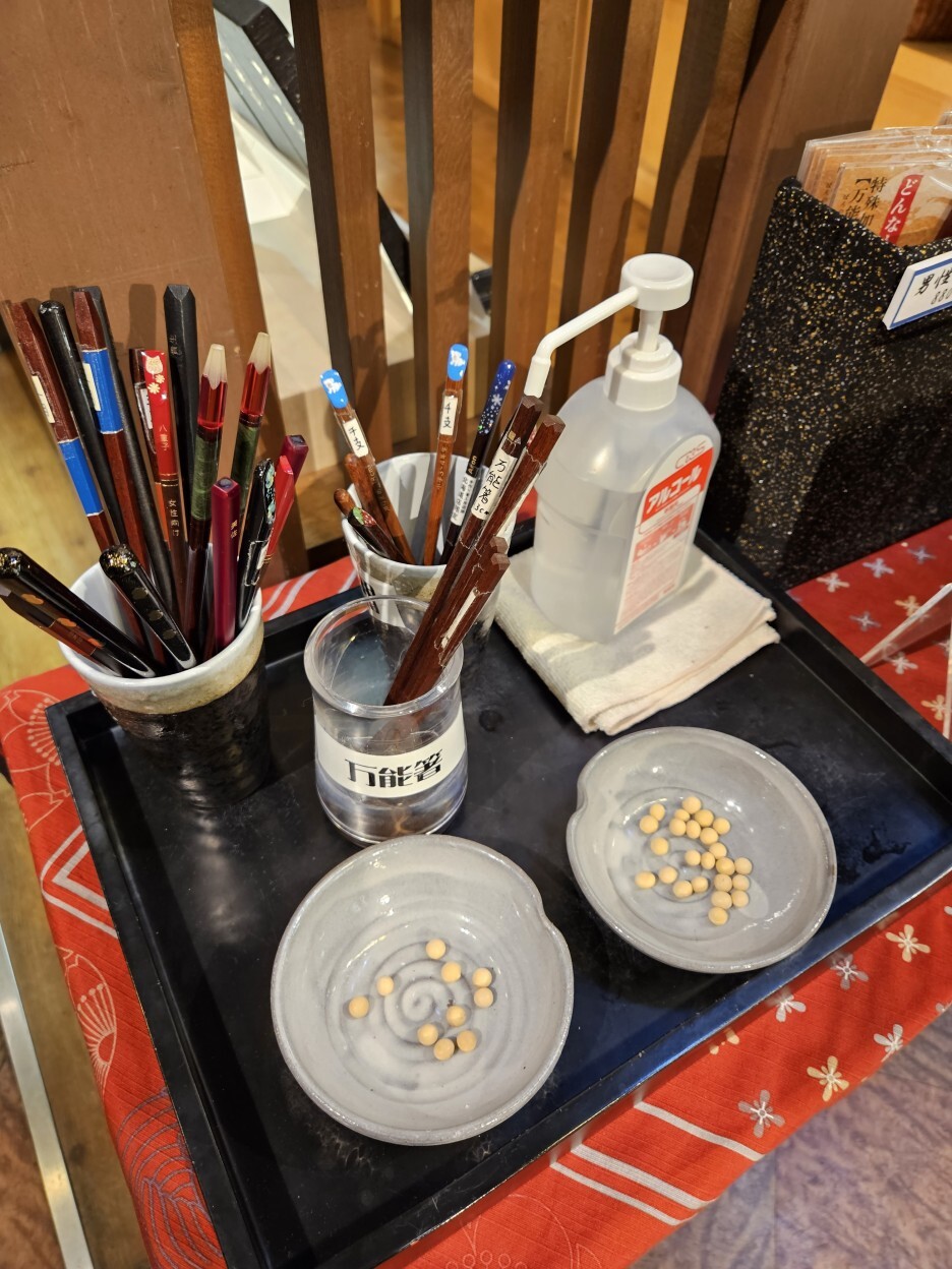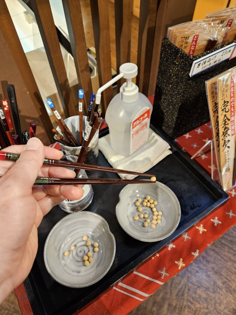자신의 손에 맞는 젓가락을 시험할 수 있는 콩집기 테스트 존.