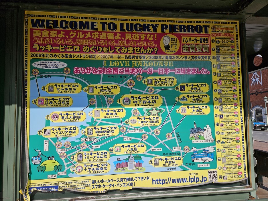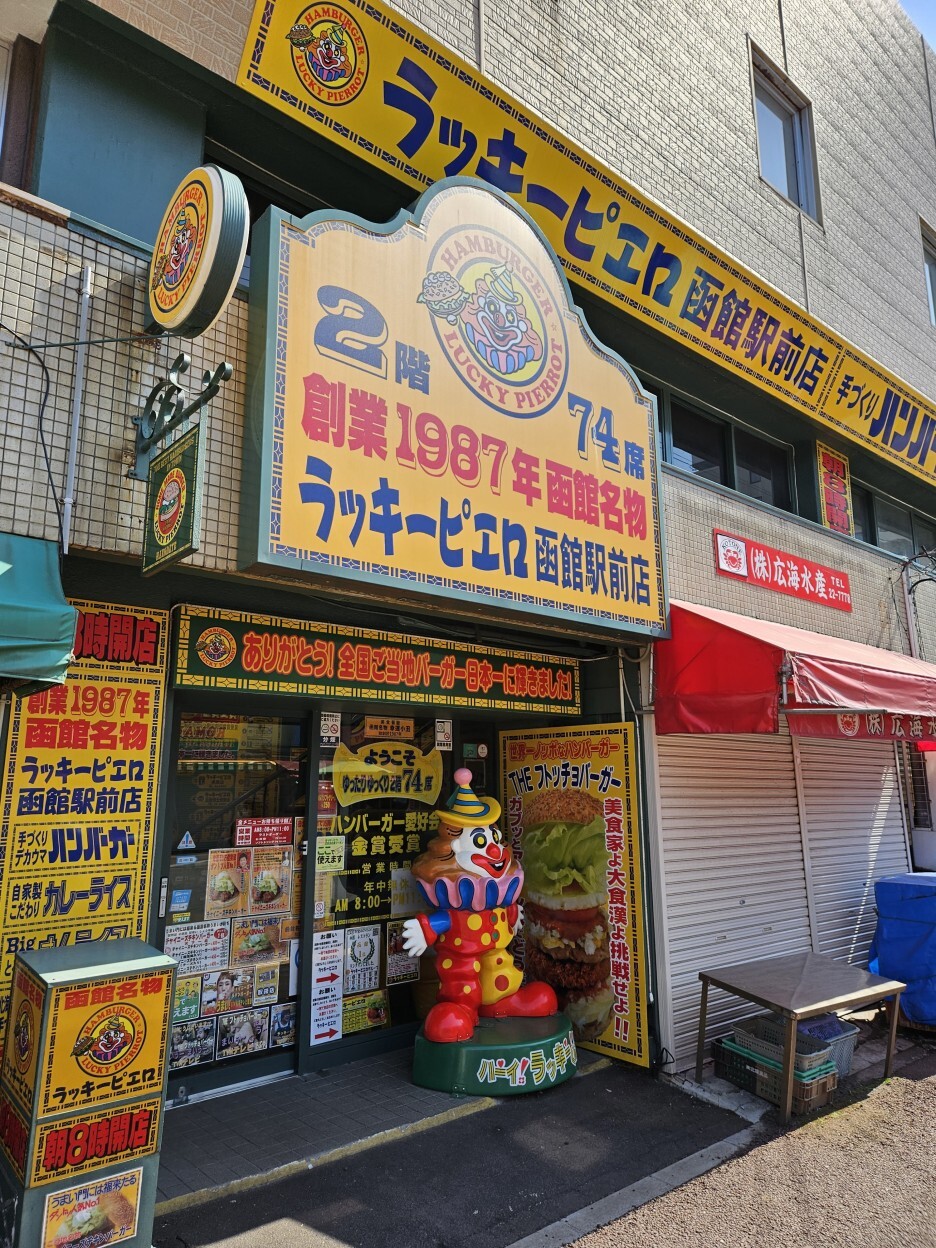 점심을 먹기 위해 방문한, 럭키 삐에로. 럭키 삐에로는 하코다테 근교에만 있는 햄버거 체인이다. 지역 경제 활성화 및 지역 명물로 남기 위해 절대 다른 지역에는 출점하지 않는 대단한 의지를 가지고 있는 곳이다.