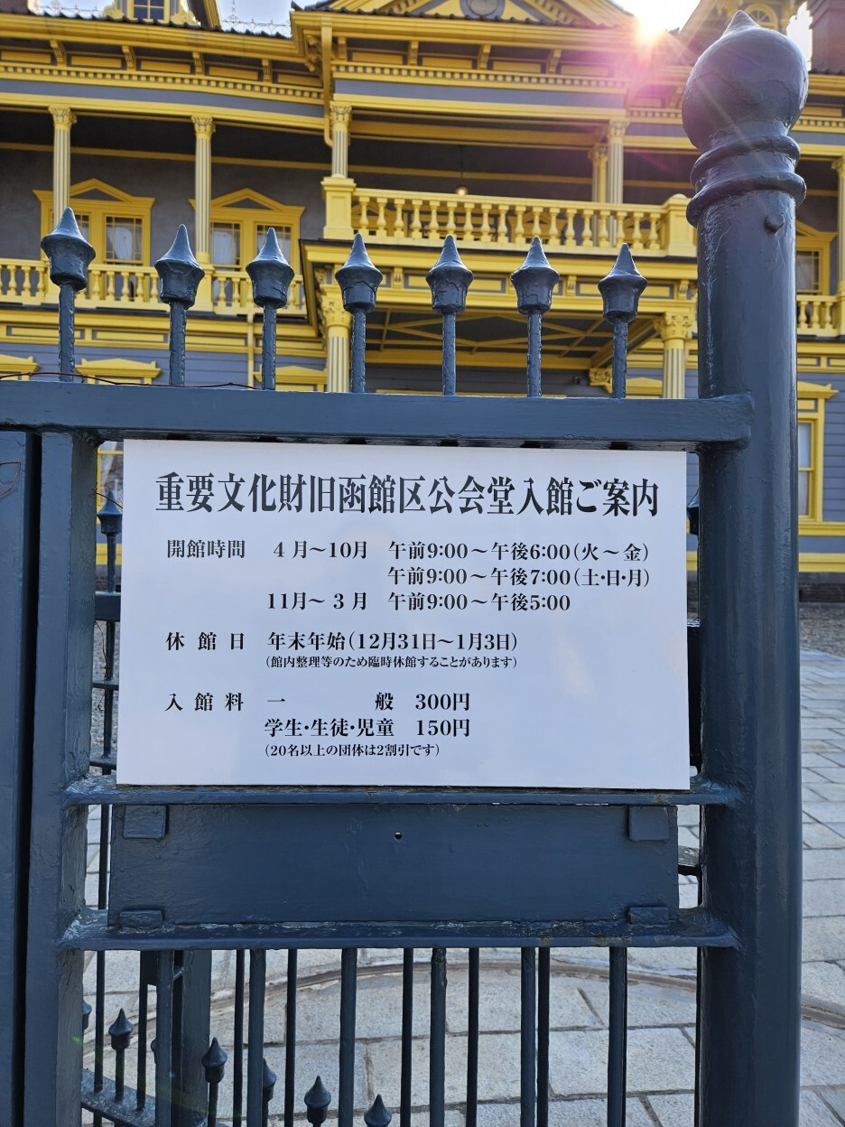 홋카이도 하코다테시 모토마치(元町)에 있는 역사적 건축물. 메이지 시대에 지어진 식민지 시대의 서양식 건물로 국가 중요문화재로 지정되어 있다. 1907년에 대화재로 마을회관 건물이 소실되어 1910년에 다시 지은 건물이라고 한다.