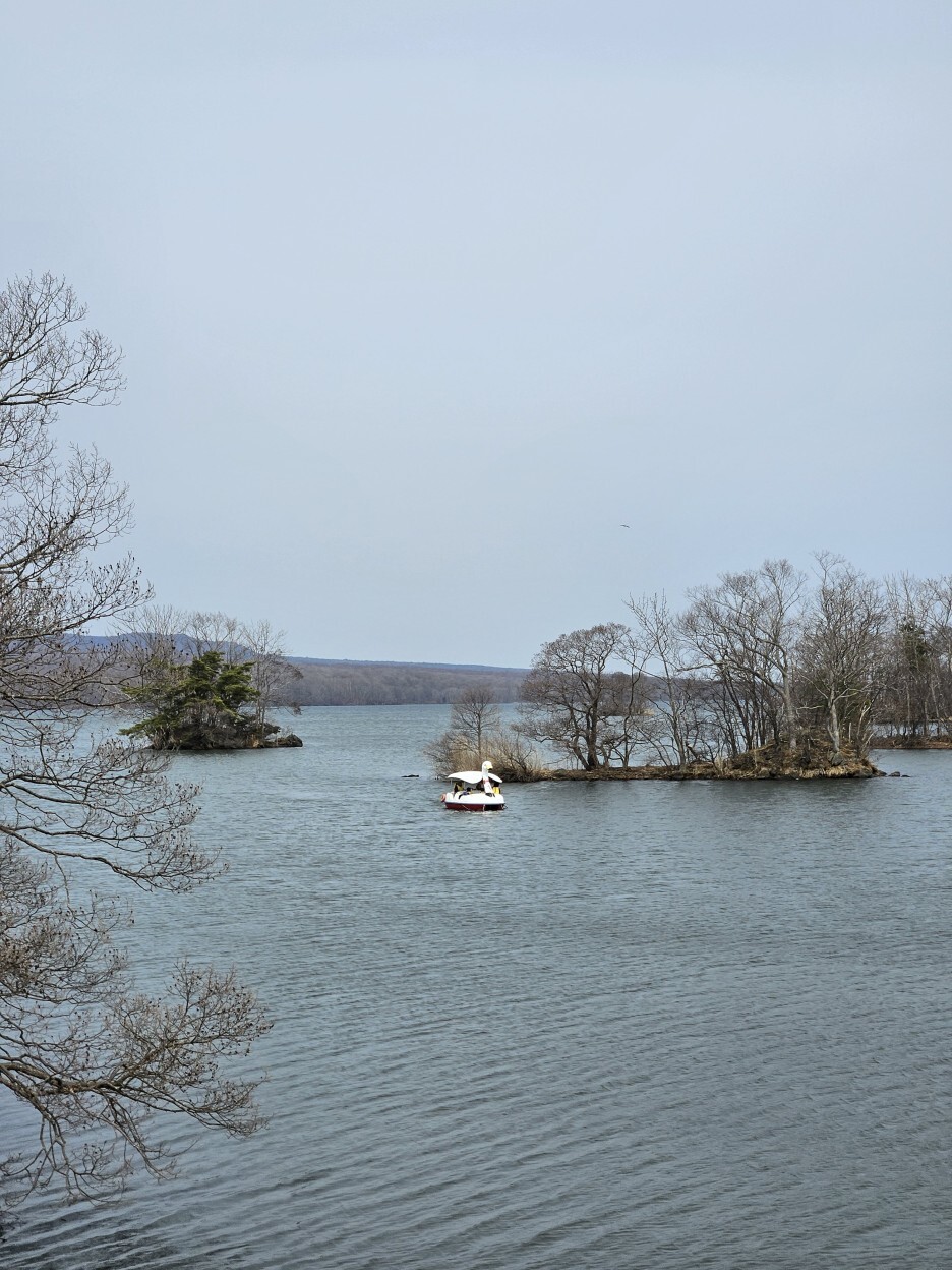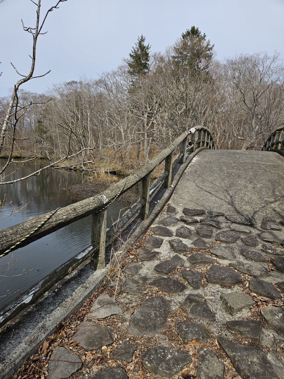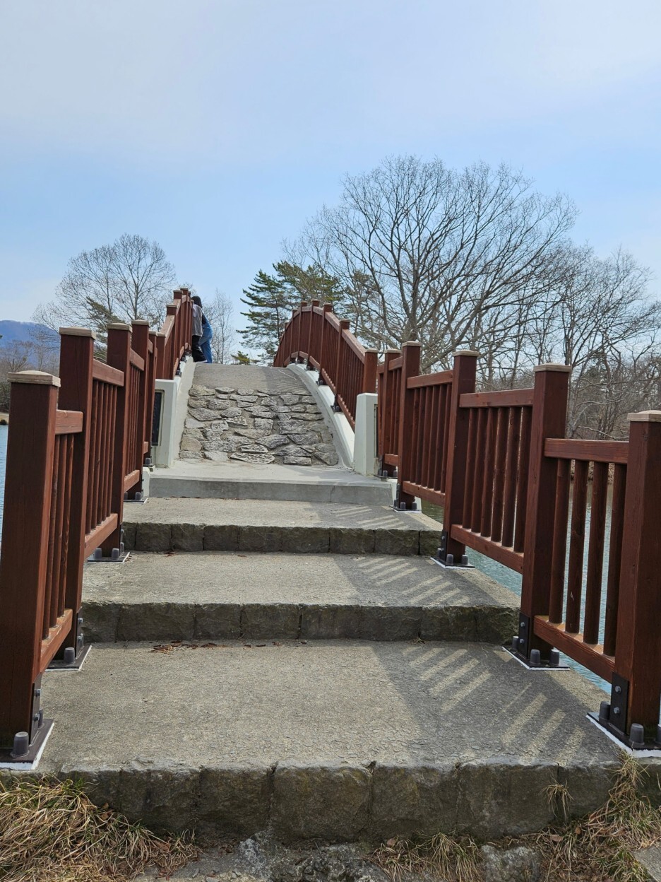 실망감을 부여잡고, 오누마 국정공원의 또 다른 명물인 작은 섬들을 연결하고 있는 다리들을 구경하기로 마음먹는다.