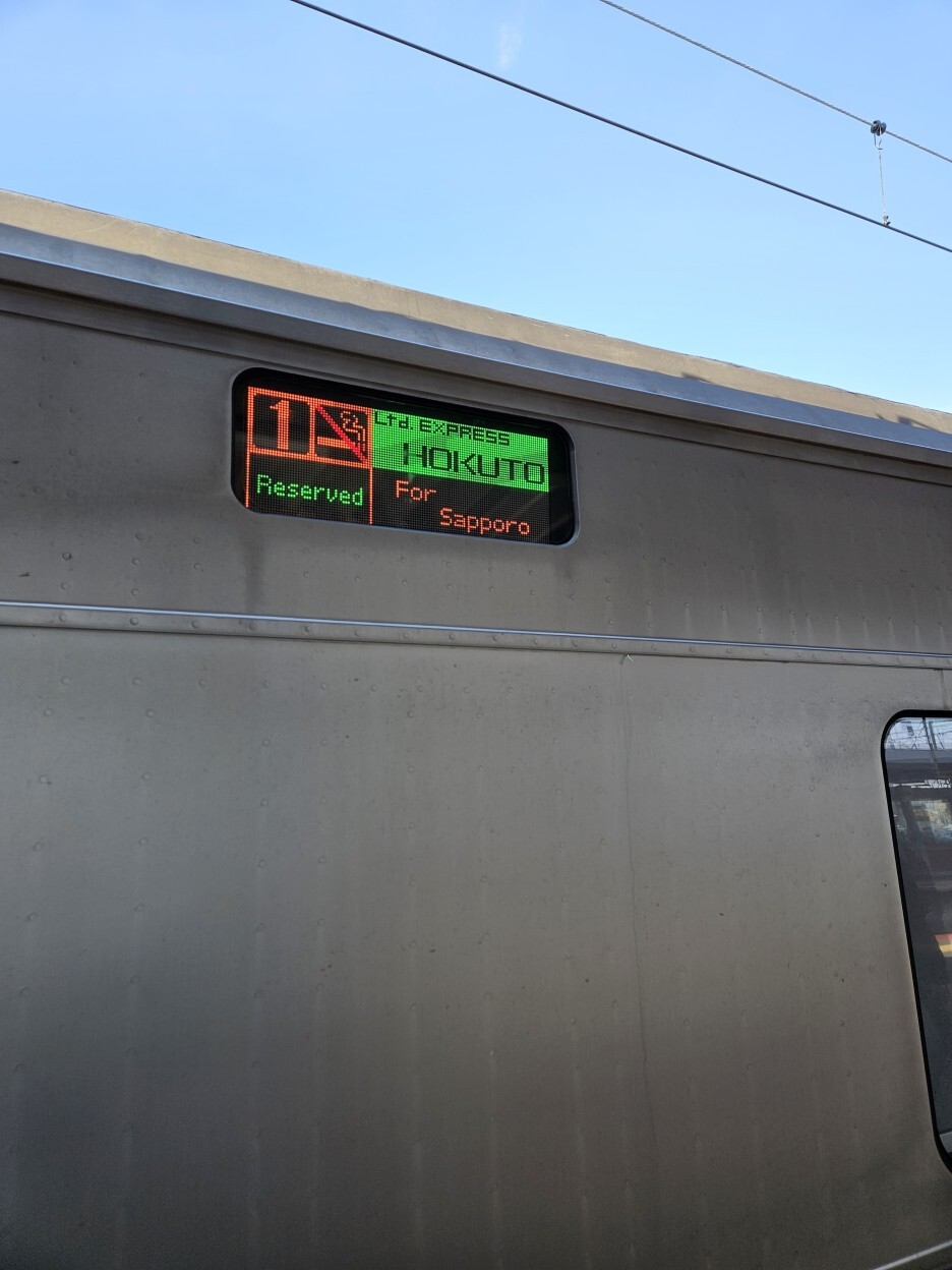 나는 12시 15분 출발 편인 JR 특급 호쿠토 11호에 탑승했다. JR 전국 패스 그린샤 권을 이용하고 있었기 때문에, 열차 비용은 크게 신경이 쓰이지 않았고, 지정석을 예약하여 특실 그린샤에 탑승할 수 있었다.