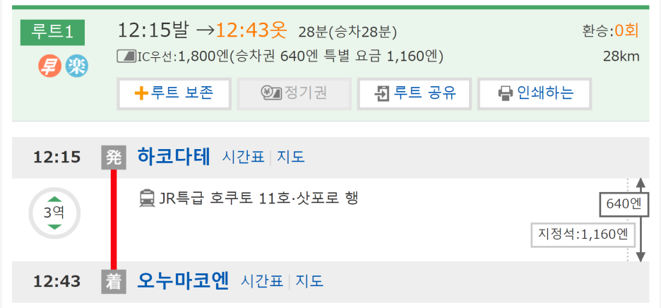 하지만, 이 JR 특급 호쿠토는 아주 자주 다니는 열차는 아니다. 일반 열차는 50분 정도 시간이 걸리니, 열차 시간표를 잘 알아보고 이동을 해야 한다.