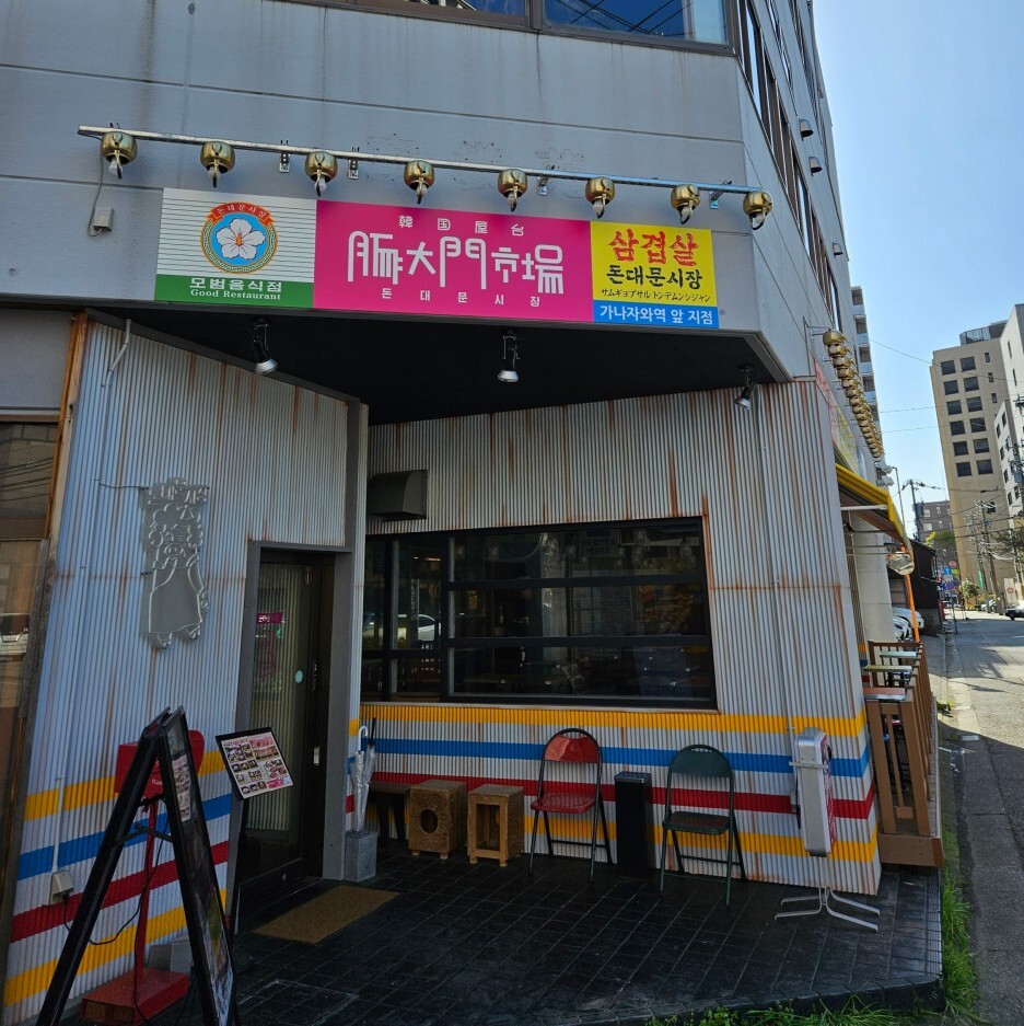 히가시차야거리를 둘러보고 호텔로 돌아오는 길에 본, 삼겹살집. 그냥 여기가 한국인 줄 오해할 정도로 잘 만들어져 있었다. 특히 모범음식점 간판은 옛날 음식점들에서 많이 본 느낌이라 놀랐다. 돼지고기 집이라 돈대문 시장이라는 이름도 센스 있다. 가나자와역 앞 지점이라는 문구가 제일 눈에 띄었다.