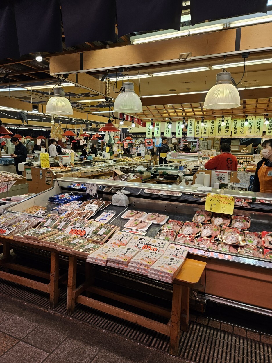 이외에도 시장 같은 형태에서 많은 해산물을 팔고 있었고, 해산물 이외의 야키토리 같은 간식거리도 많이 판매하고 있는 모습이다.