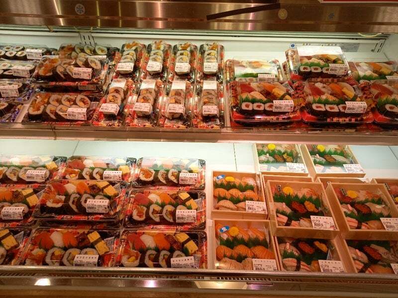 이 마트는 다양한 스시, 초밥, 도시락 등의 메뉴를 판매하고 있다고 해서, 술과 안주거리를 사서 호텔에서 먹기로 한다. 100 Ban 마트는 이런 신선식품으로 만든 도시락류가 꽤 많이 있었고, 튀김류도 많다. 가나자와에서 야식으로 한잔이 필요한 경우에는 이 100 Ban 마트를 적극 추천 드린다.
