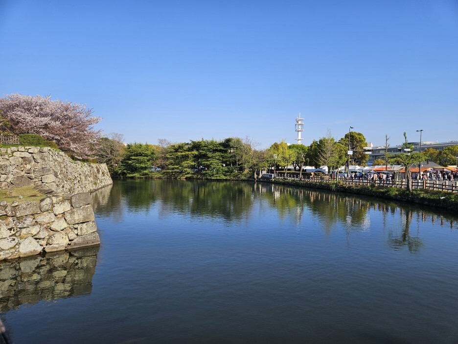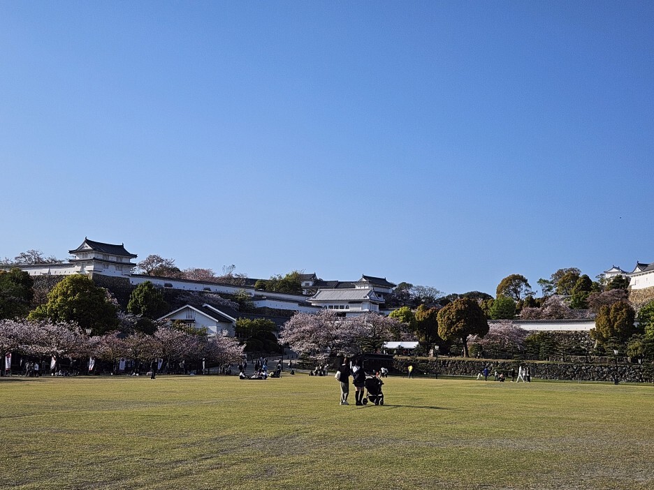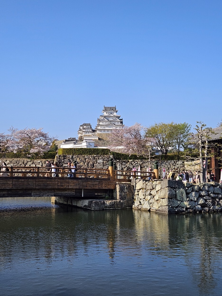 그리고 도착한 히메지성 입구. 입구에서 바로 보이는 히메지성과 주변의 벚꽃들이 아름다워 보인다.