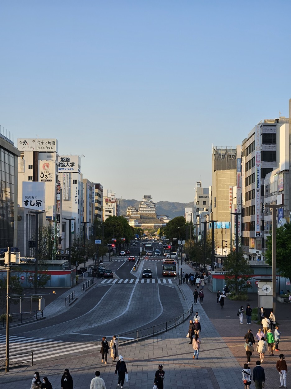 다시 히메지역으로 돌아와, 석양이 질 때의 히메지성을 다시 한번 보았다. 오히려 히메지역에서 보는 히메지성의 모습이 가장 인상적이었던 기억이다. 직접 가보신다면 히메지역 2층에서 히메지성을 직접 보시길, 꼭 추천드린다. 상당히 멋진 풍경이었다.