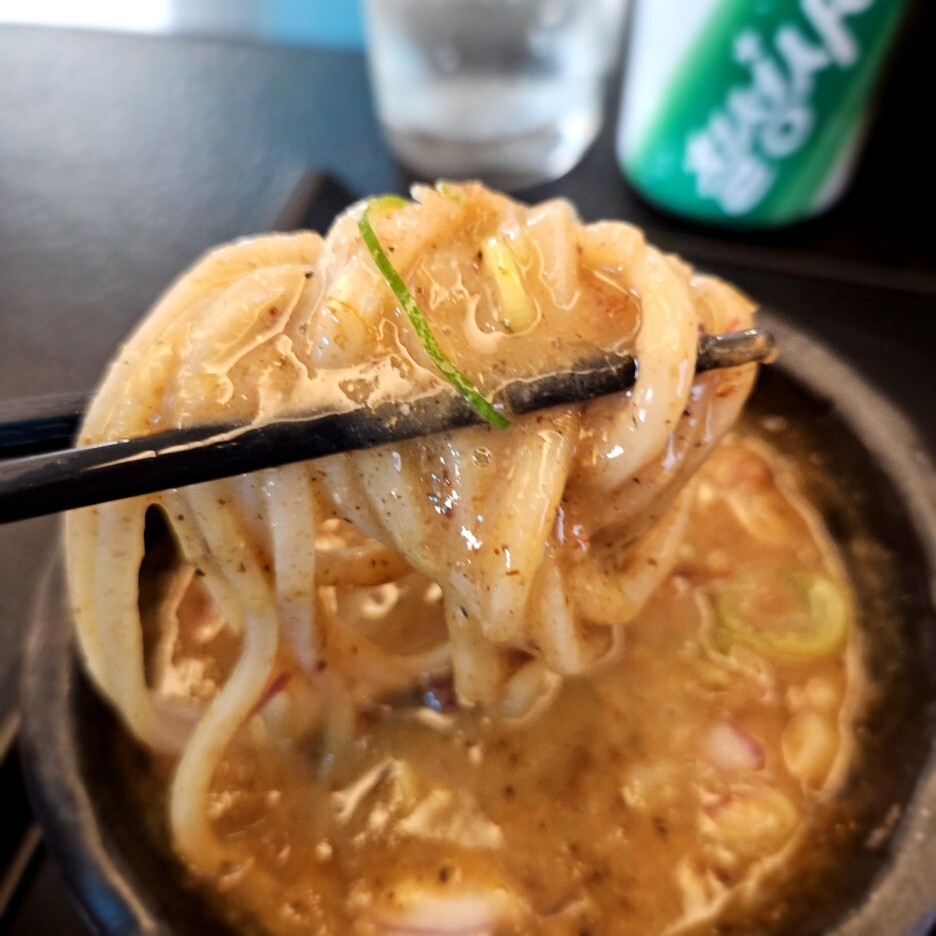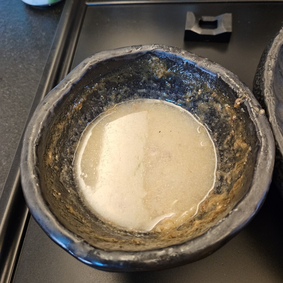 정신없이 그 많은 450g의 면을 다 먹고 이제 츠케 지루만 남았다. 그런데, 확실히 츠케지루의 양이 줄었다고 생각이 든다. 양재 토라도라에서는 어느정도 츠케지루가 남는 느낌이었는데, 이제는 모자라는 느낌이다. 그래서 지루 추가가 메뉴에도 들어가지 않았나 싶다. 뭔가 부분유료화가 많이 된듯 하다.