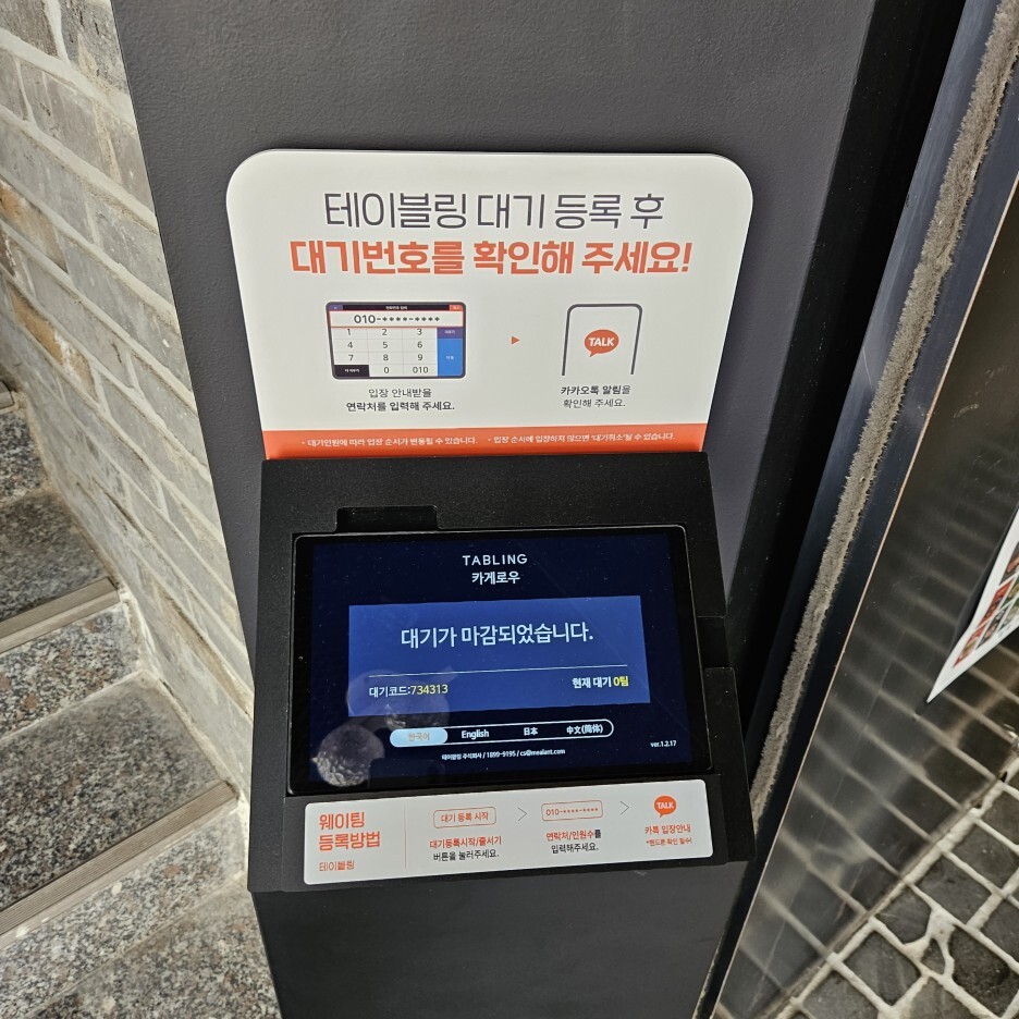 대기는 테이블링 앱으로 변경이 되었다. 하지만, 원격 줄 서기는 안 되는 것으로 알고 있다.