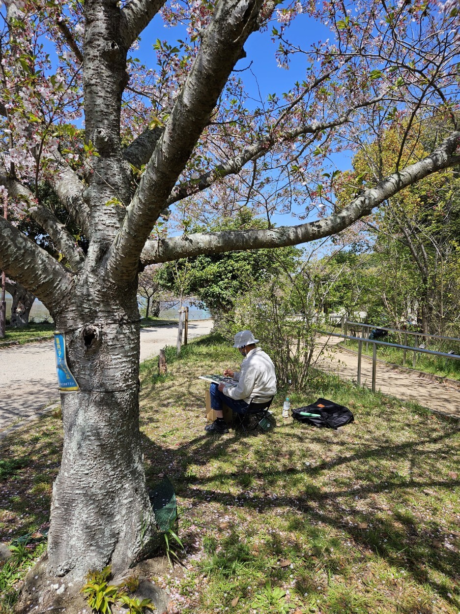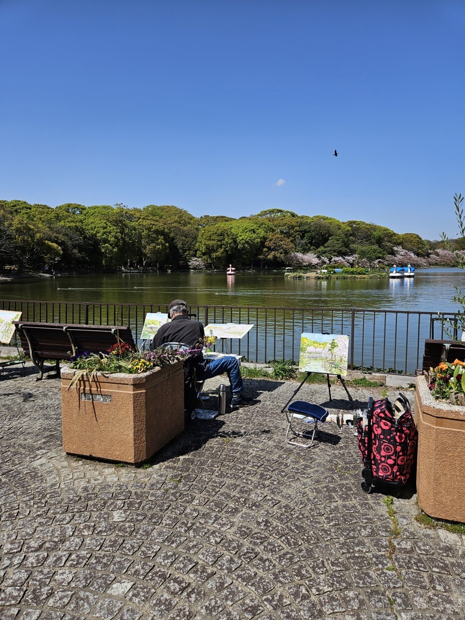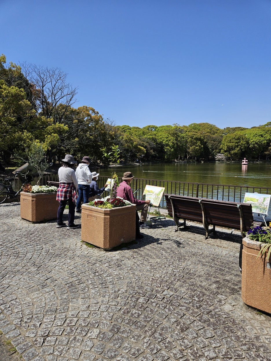 아카시 공원에는 큰 호수가 있다 하여 가보니, 호수 보다 눈에 먼저 보인 것은 어르신들께서 그림을 그리고 있는 모습이었다.