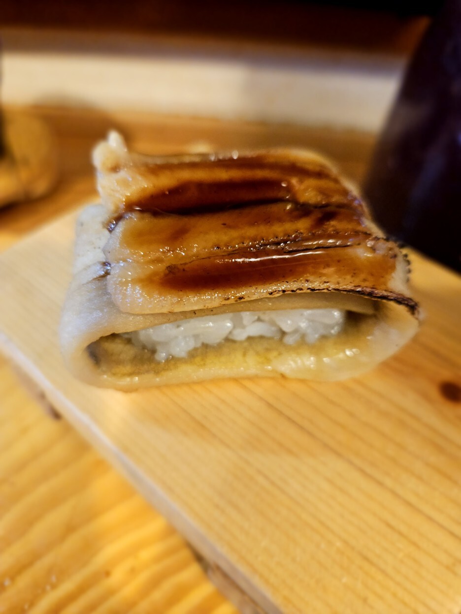 재료 네타도 엄청 크며, 그 맛도 아주 훌륭하다. 가장 유명한 것이 거의 한 마리로 보이는 아나고가 올라간 스시.