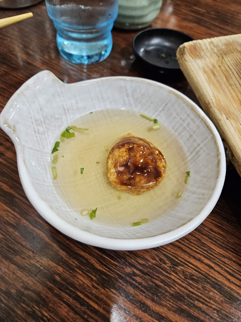 자극적이지 않은 단백한 맛을 좋아하는 사람이라면 충분히 맛있게 먹을 수 있는 음식이었다. 타코야키는 강한 소스와 마요네즈, 가쓰오부시의 맛이 강하지만 좀 더 재료 본연의 맛에 집중되는 형태의 타마코야키다. 역시 원조 지역에 와서 먹길 잘한듯하다.