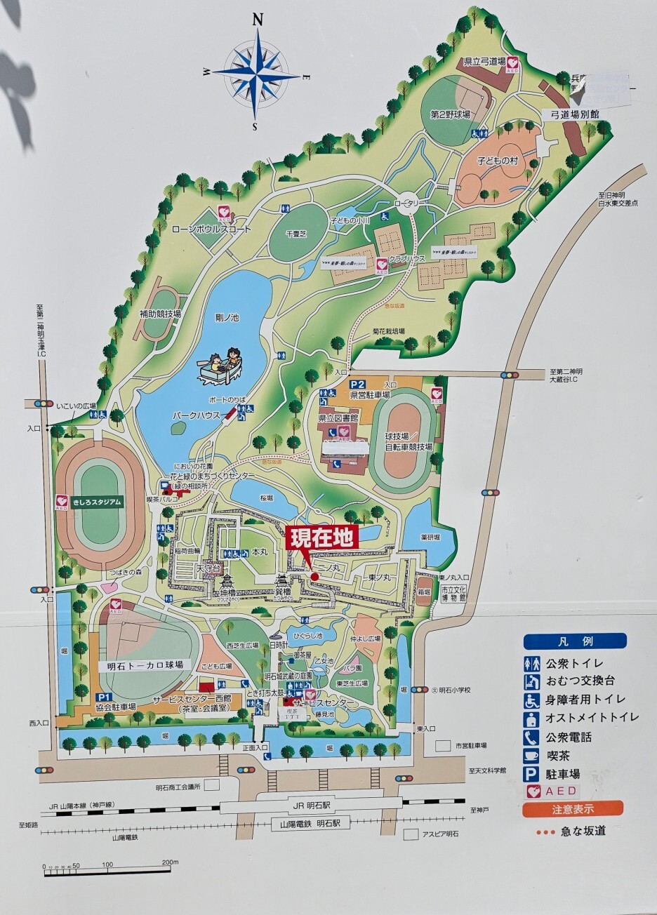 아카시 공원은 아카시역의 북쪽 출입구로 나와 횡단보도 하나면 건너면 바로 있다.