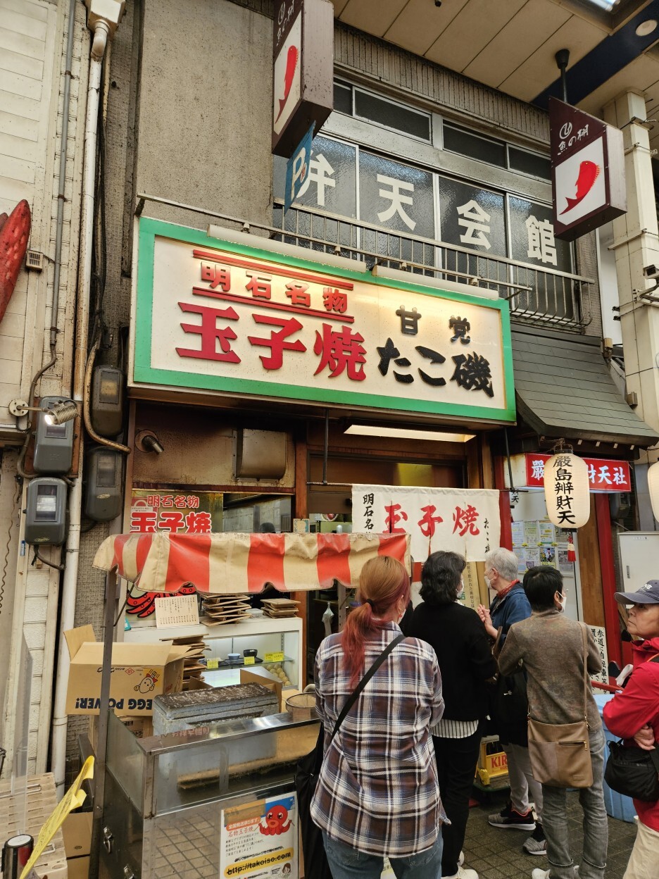 시장 안에는 꽤 많은 타마코야키 가게들이 성업 중이었다. 점심시간이 지난 시점임에도 아직 줄을 많이 서있는 가게도 있고.