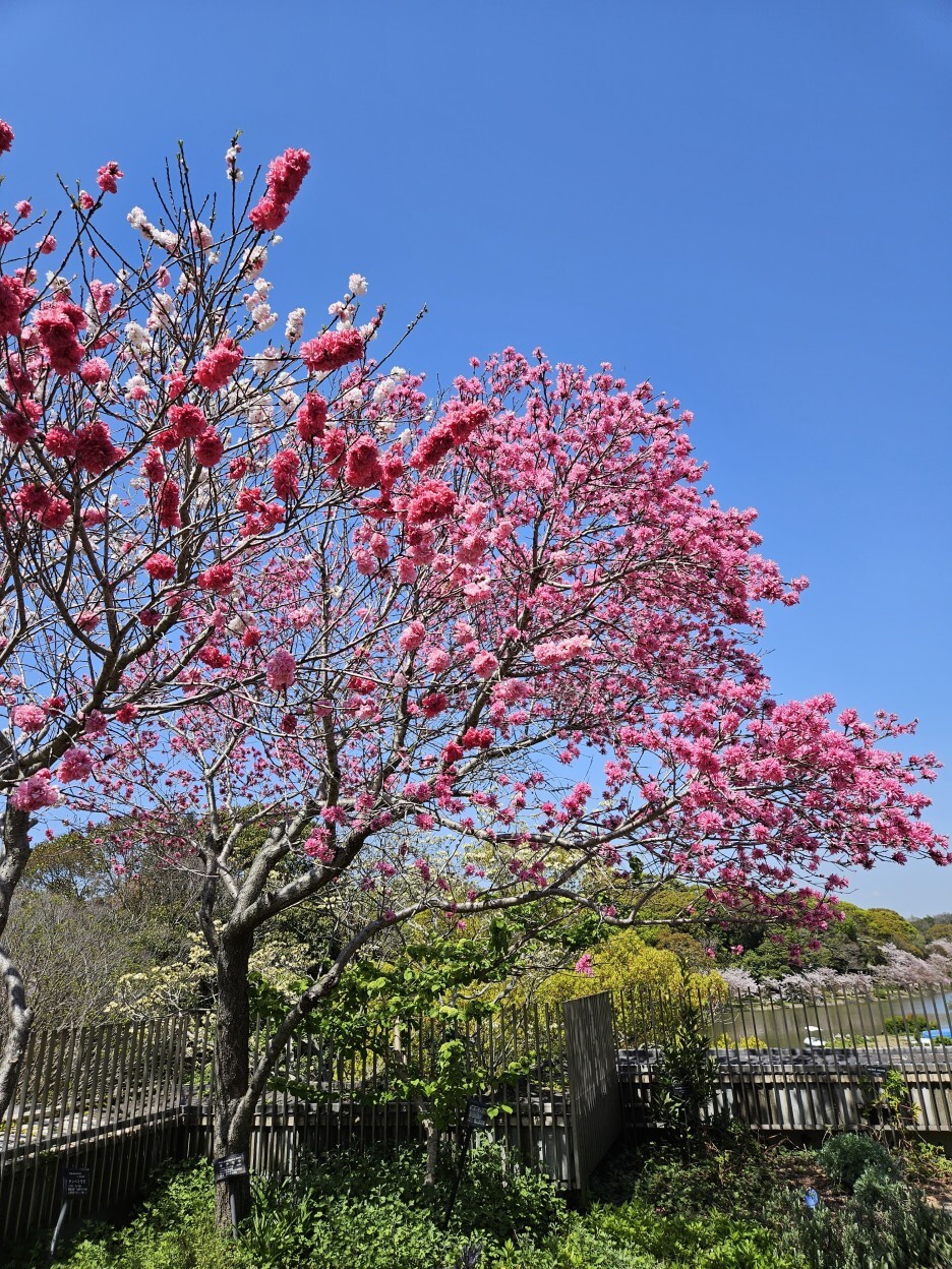 아주 멋지게 펴있는 벚꽃. 겹벚꽃인듯하다. 핑크빛의 꽃 색깔이 아주 강렬하다.