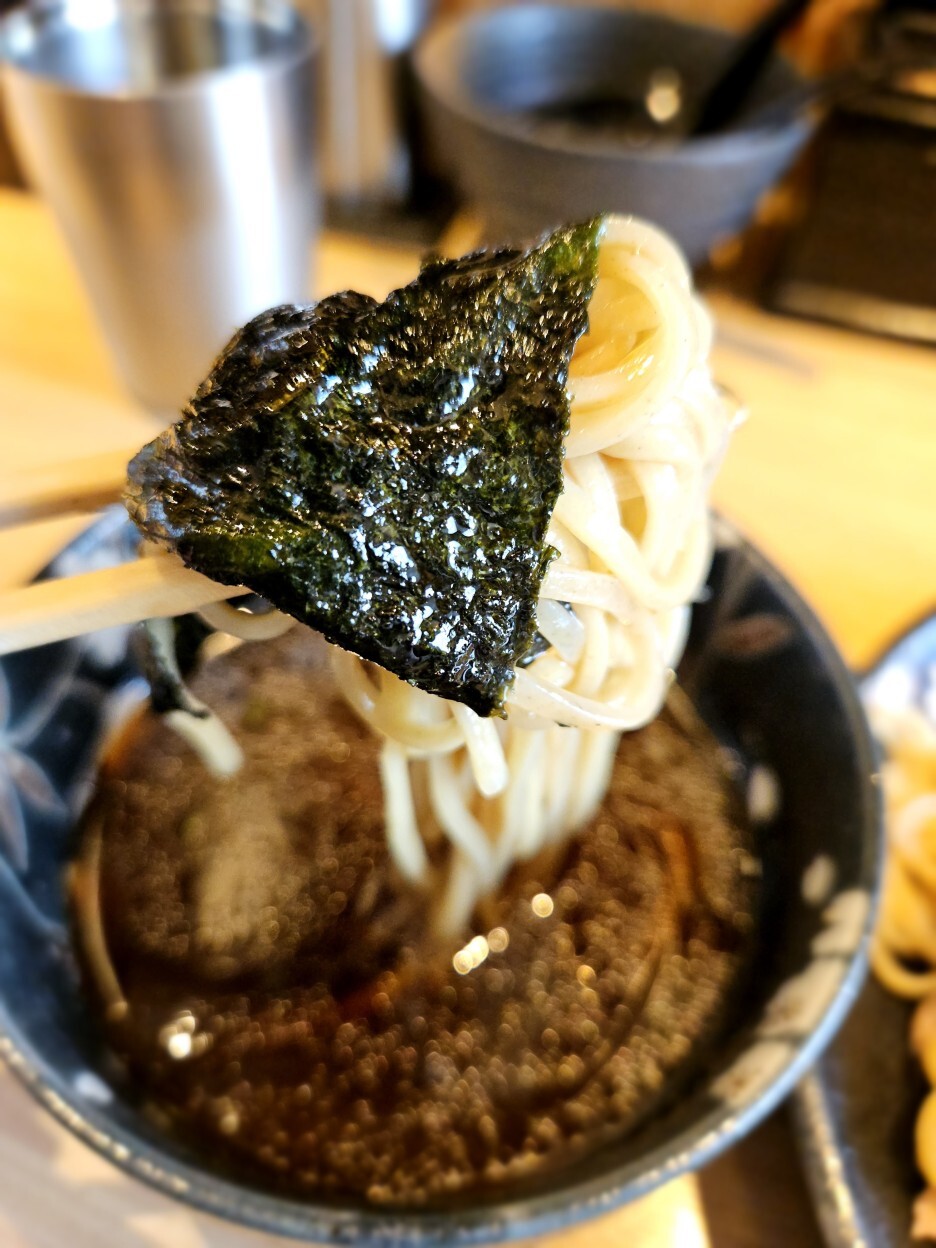 면과 김을 함께 츠케지루에 찍어 먹어보니 쇼유 베이스의 국물이 상당히 잘 어울린다.