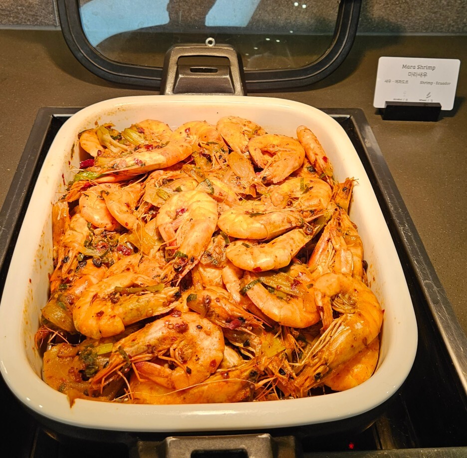 옥수수 구이와 마라 새우.