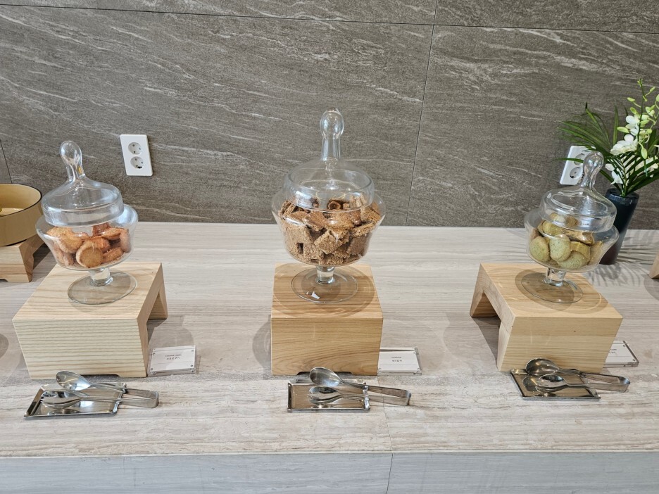 쿠키류는 코코넛 쿠키, 시리얼 바, 녹차 쿠키. 보통 호텔들이 비슷하게 준비를 해두는 쿠키류이다.