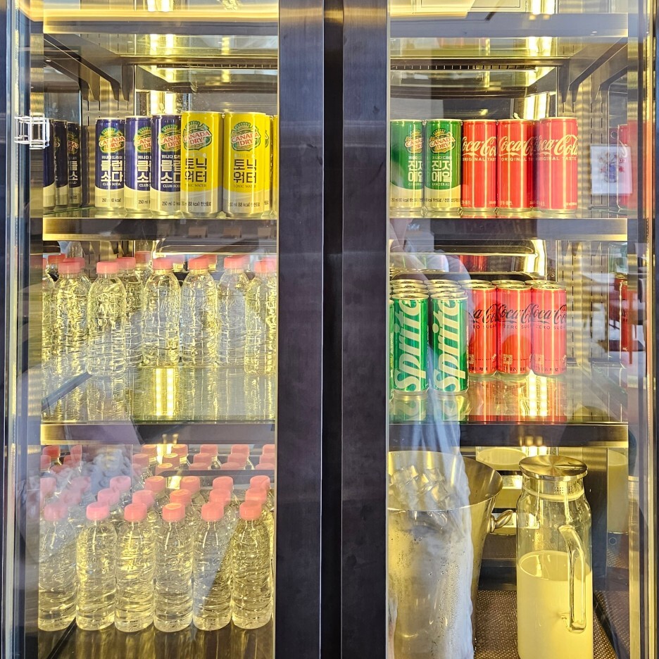 캐나다 드라이 3종류, 코카콜라, 코크 제로, 스프라이트, 우유, 얼음 등.