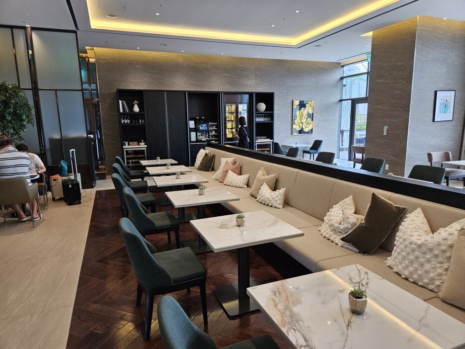 더블트리에서는 체크인 시 웰컴 쿠키를 제공해 주셔서, 이렇게 라운지에서 체크인 웰컴 쿠키와 음료를 먹으면 딱 좋다. 하지만 칼로리는 무서울 정도이긴 하다.