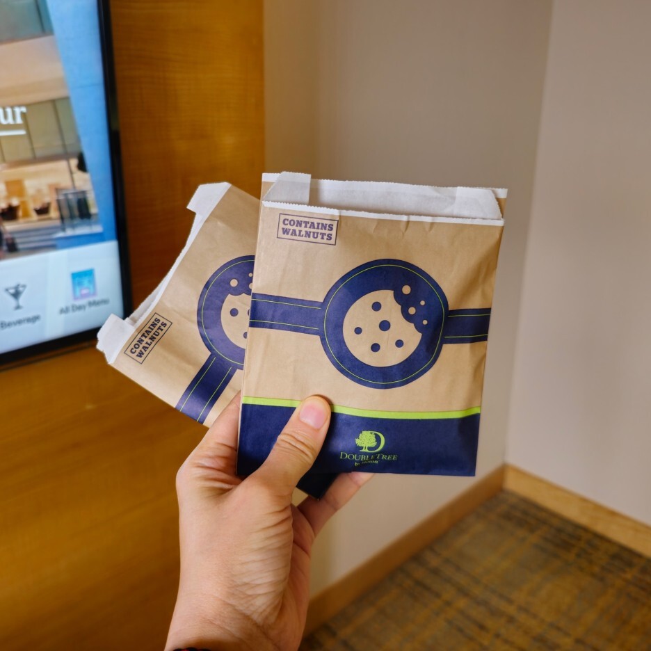 체크인 시 받은 웰컴 쿠키. 전 세계 모든 더블트리 바이 힐튼에서 투숙객에게 제공하는 시그니처 쿠키.