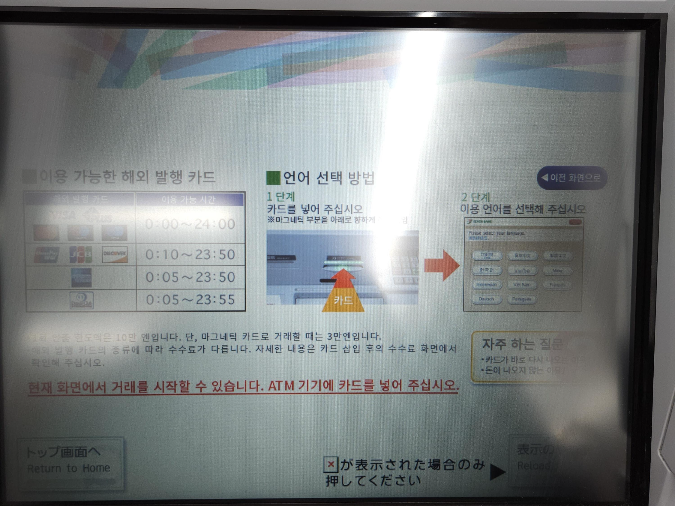 카드를 넣으면 거래를 시작할 수 있다고 나온다.
