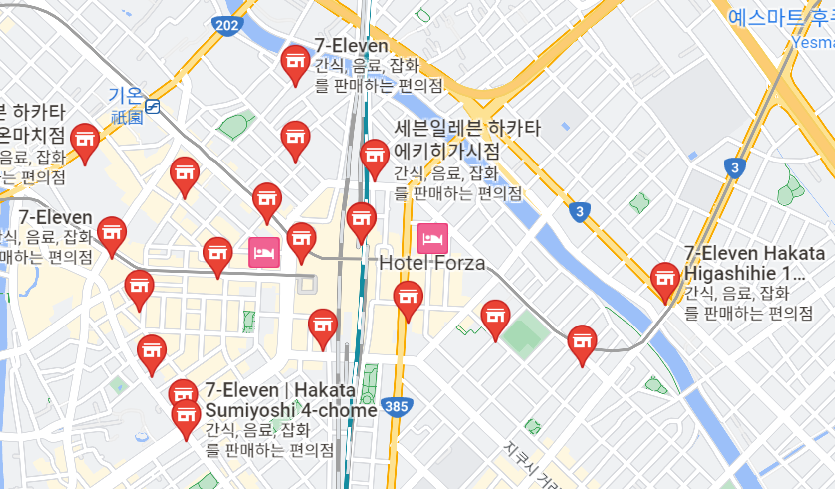 구글맵에서 seven eleven 이라고 찾아보면 자신의 현재 위치 부근에 엄청 나온다.