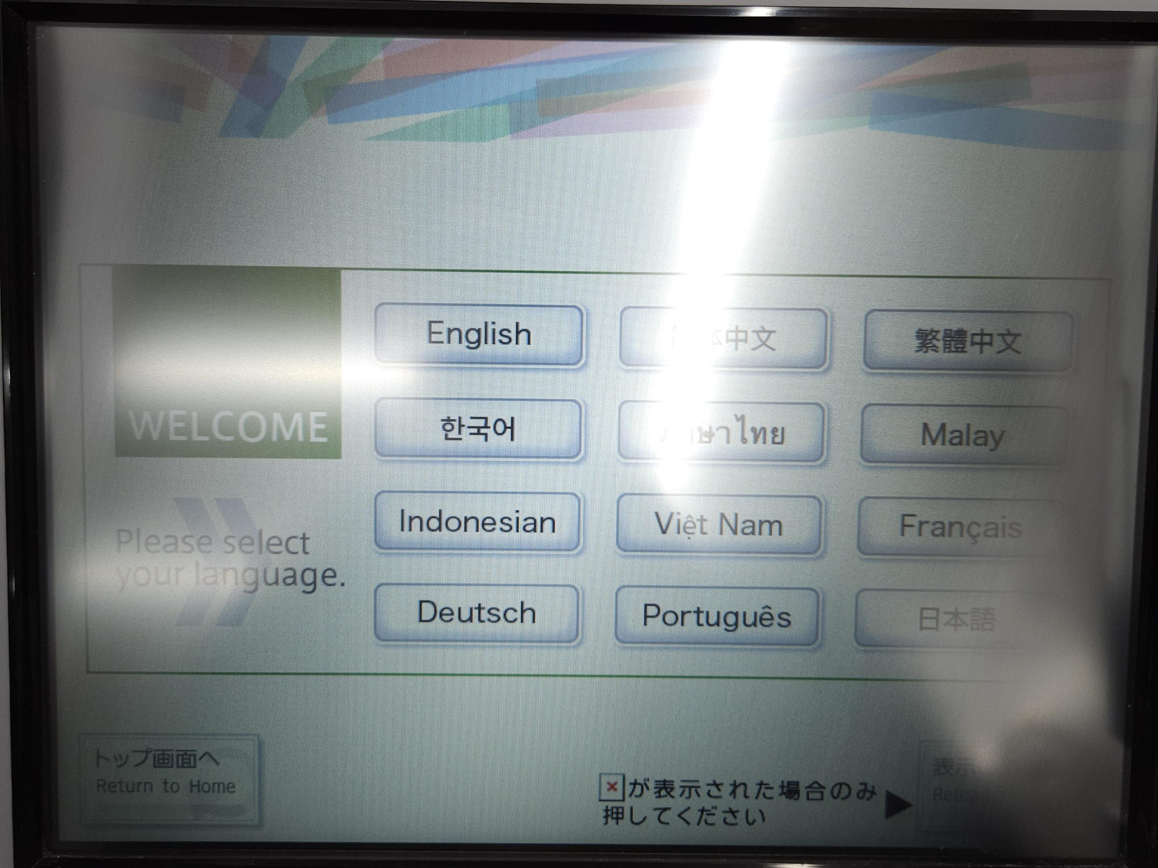 카드를 기계에 넣는다. 카드 넣는 부분은 터치 화면의 오른쪽 아래에 있다.