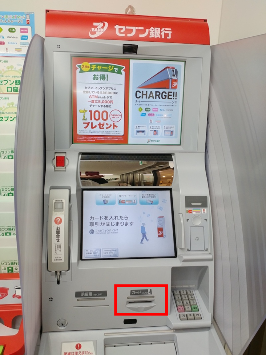 먼저 가까운 세븐일레븐 편의점으로 가서 ATM를 찾아보자. 구석편에 빨간색 테마의 기계가 있을 것이다.